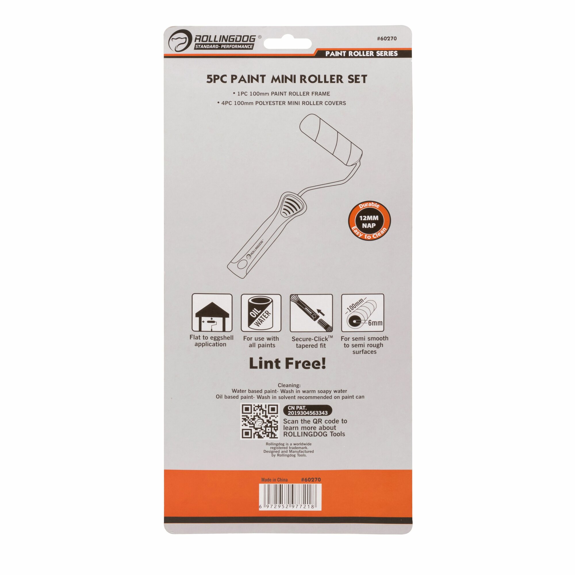 Набор валиков с бюгелем Rollingdog 100мм, ворс 12мм, полиэстер, арт.60270 интересное: