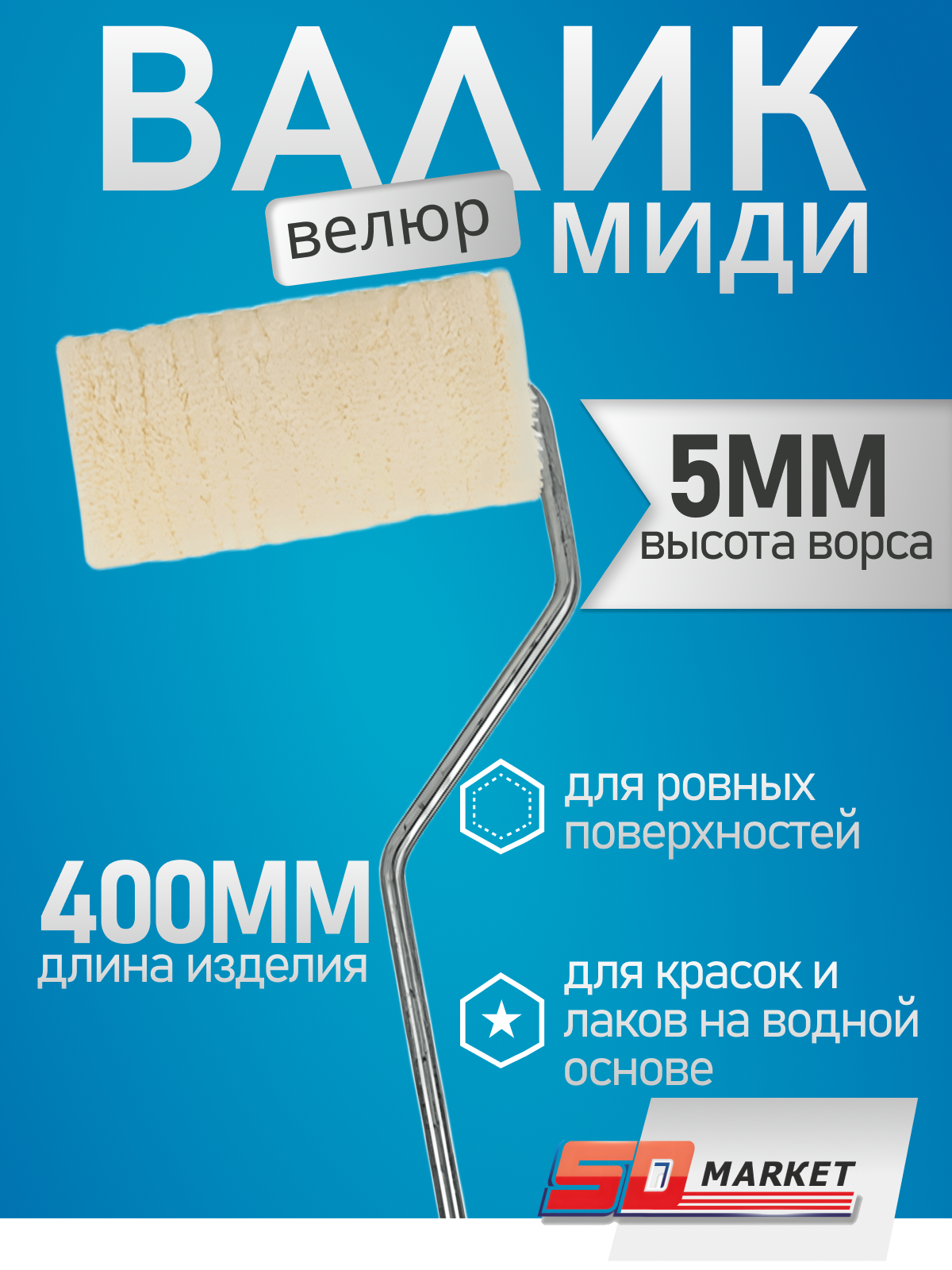 Валик малярный миди 10 см для краски стен и мебели из микрофибры