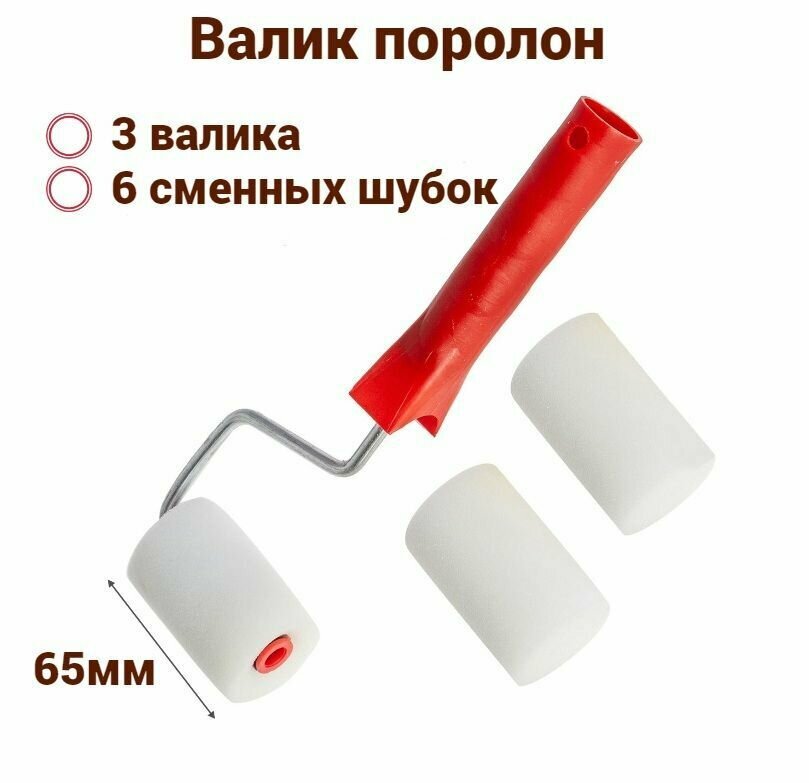 Купить Валик поролон 65 мм, D6 для лаков, клеев, красок на водной основе (3 штуки + 6 сменных шубки)