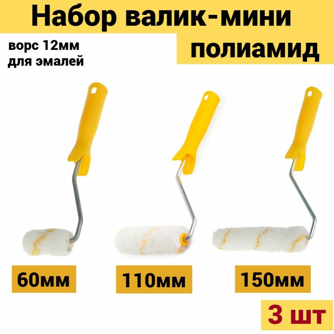Купить Набор валик мини 3шт: 60,110,150мм Акор полиамид ворс 12мм для эмалей