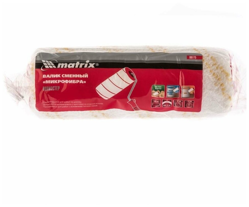 Купить Валик сменный "Микрофибра", 180 мм, ворс 12 мм, D 48 мм, D ручки 8 мм, полиэстер Matrix, 80775