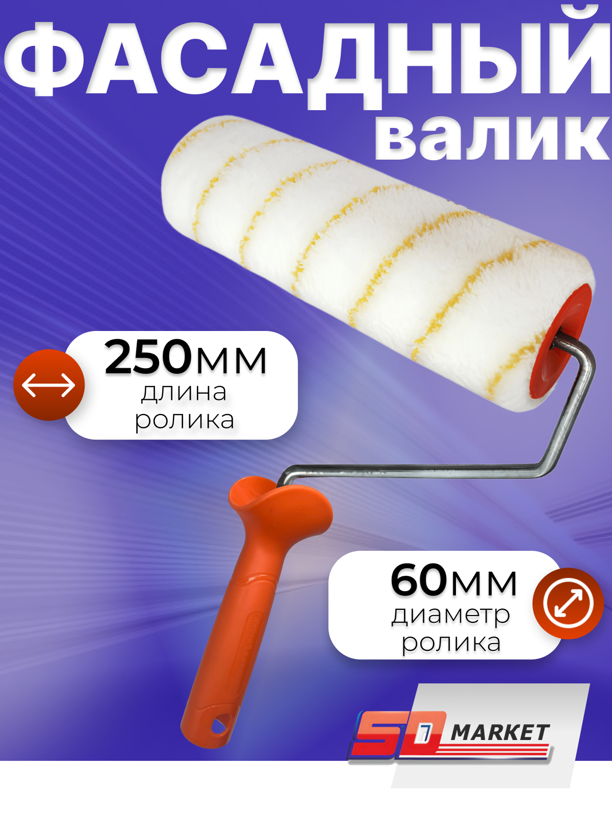 Валик большой малярный для краски стен и фасадов 25 см