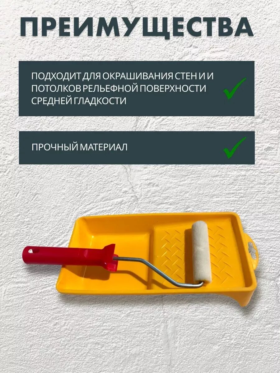 Мини-валик малярный 100 мм, лоток и сменный ролик, для качественной покраски стен, потолков и мебели интересное: