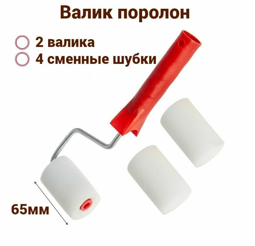 Валик поролон 65 мм, D6 для лаков, клеев, красок на водной основе (2 штуки + 4 сменные шубки) интересное: