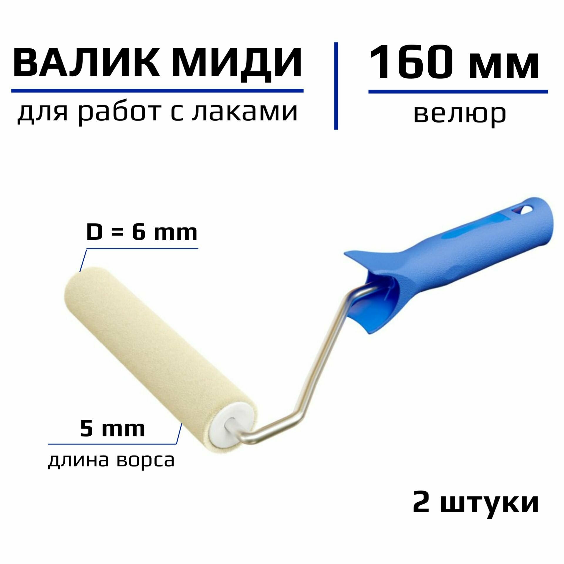 Сменный ролик для миди валика 160мм Велюр Для работ с лаками 2 штуки