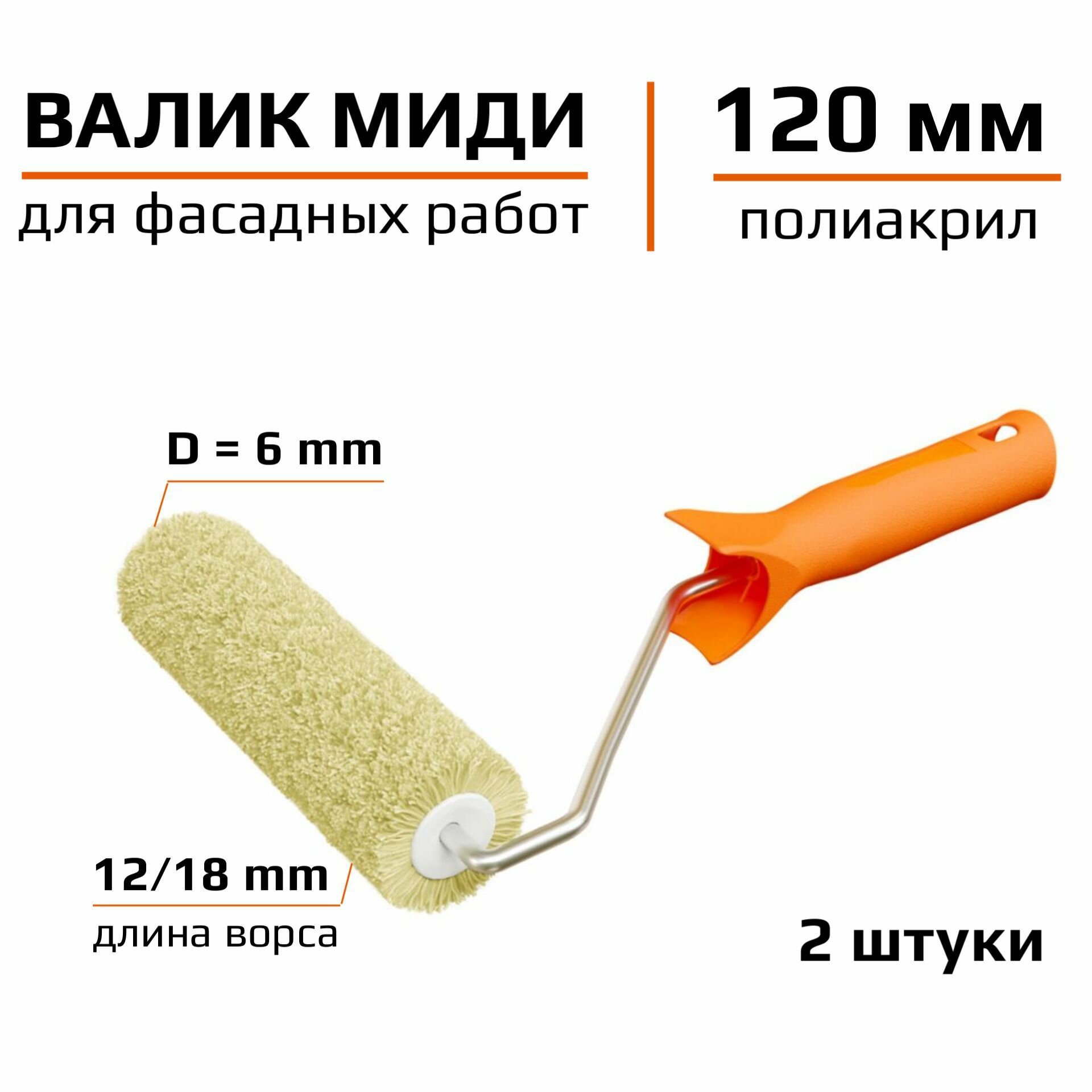 Валик миди Акор 160мм Полиакрил Для фасадных работ 2 штуки