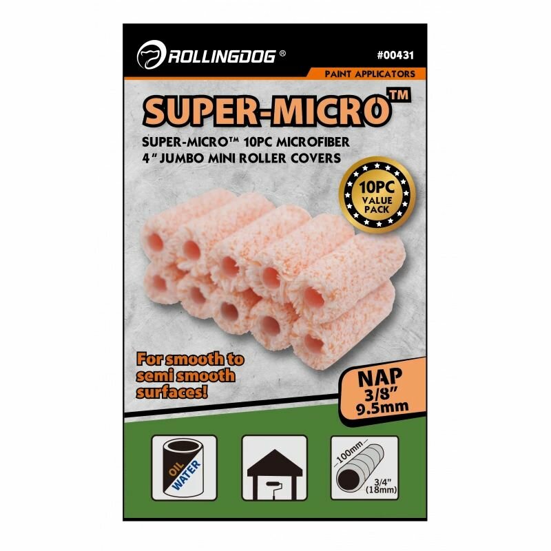 Купить Набор валиков Rollingdog SUPER-MICRO 100 мм, 10 шт, ворс 9.5 мм, каркас 18 мм, микрофибра, серия Professional, арт.00431 (оригинал)