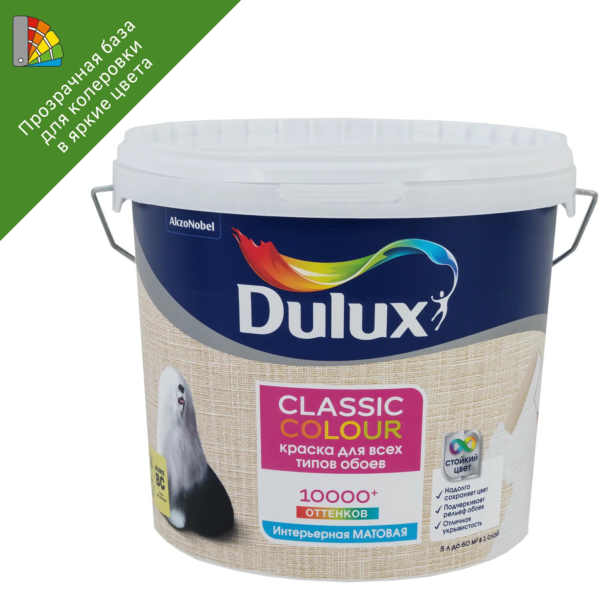 DULUX Classic Colour база BС краска для обоев прозрачная матовая (4,5л) / DULUX Classic Colour base BС краска для обоев матовая прозрачная (4,5л)