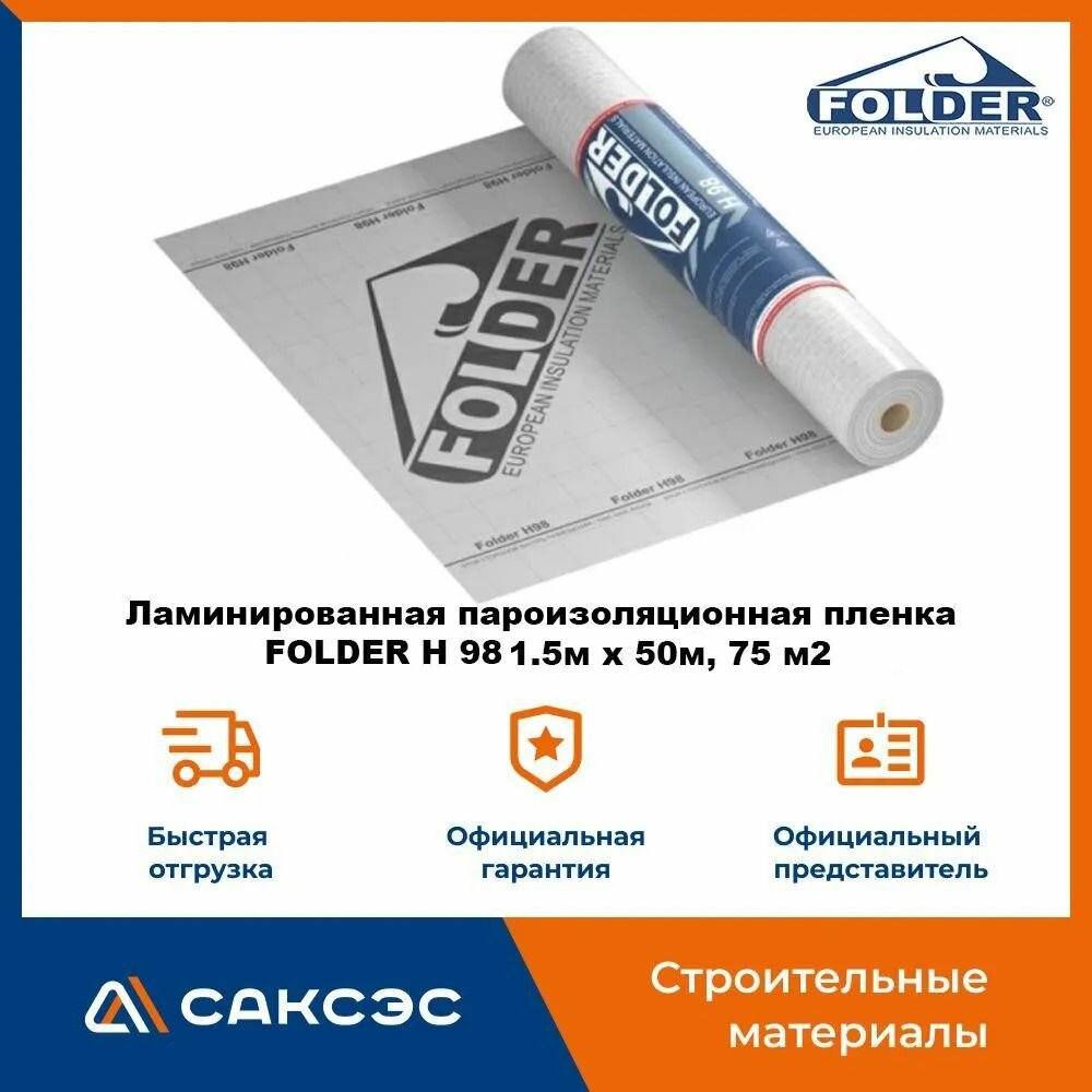 Ламинированная пароизоляционная пленка FOLDER H 98, 1.5м х 50м, 75 м2 / Пароизоляция Фолдер H98 интересное: