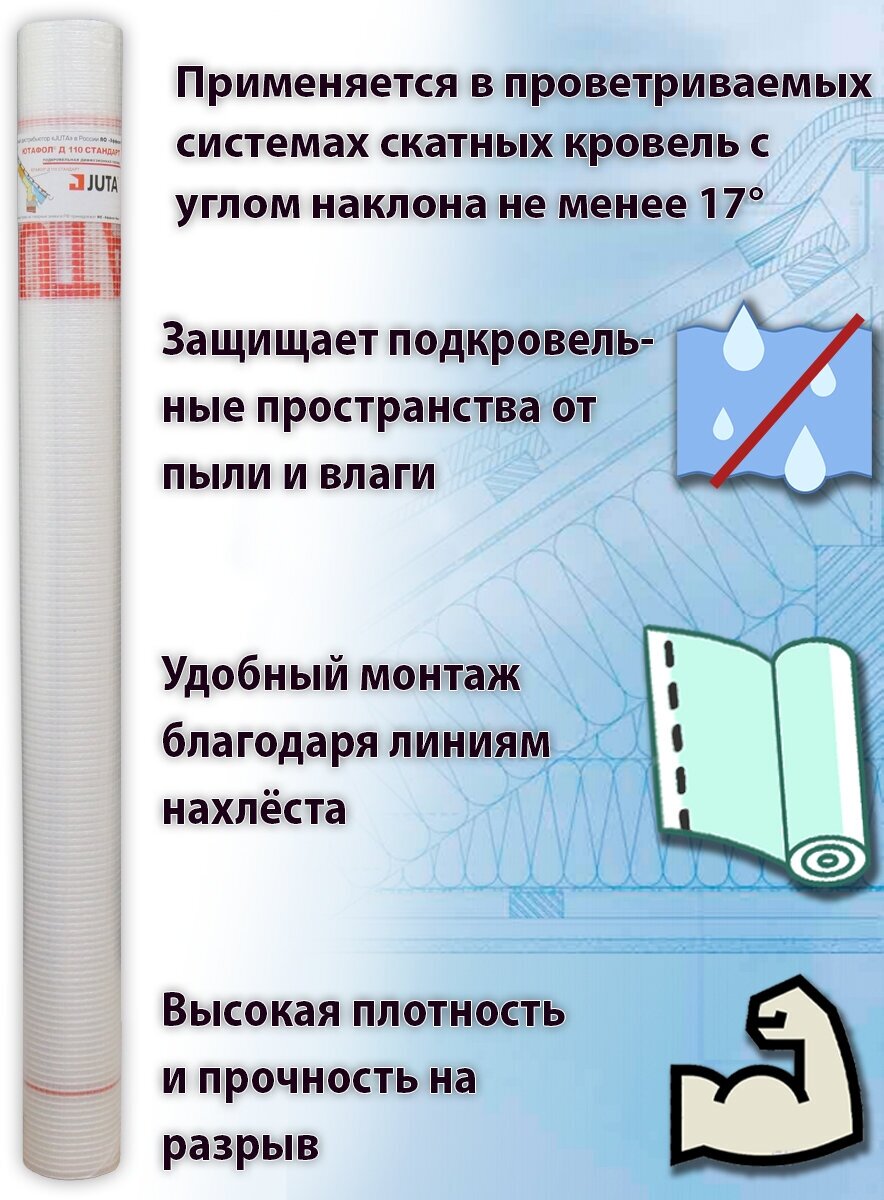 Подкровельная гидроизоляционная пленка Juta Ютафол Д 110 Стандарт 75м2 интересное: