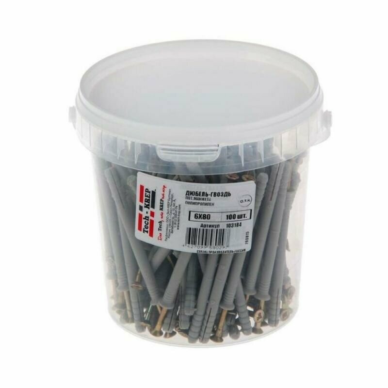 СохранитьДюбель-гвоздь TECH-KREP 6х80 пот. манжета (полипропилен) (100 шт) - ведро интересное: