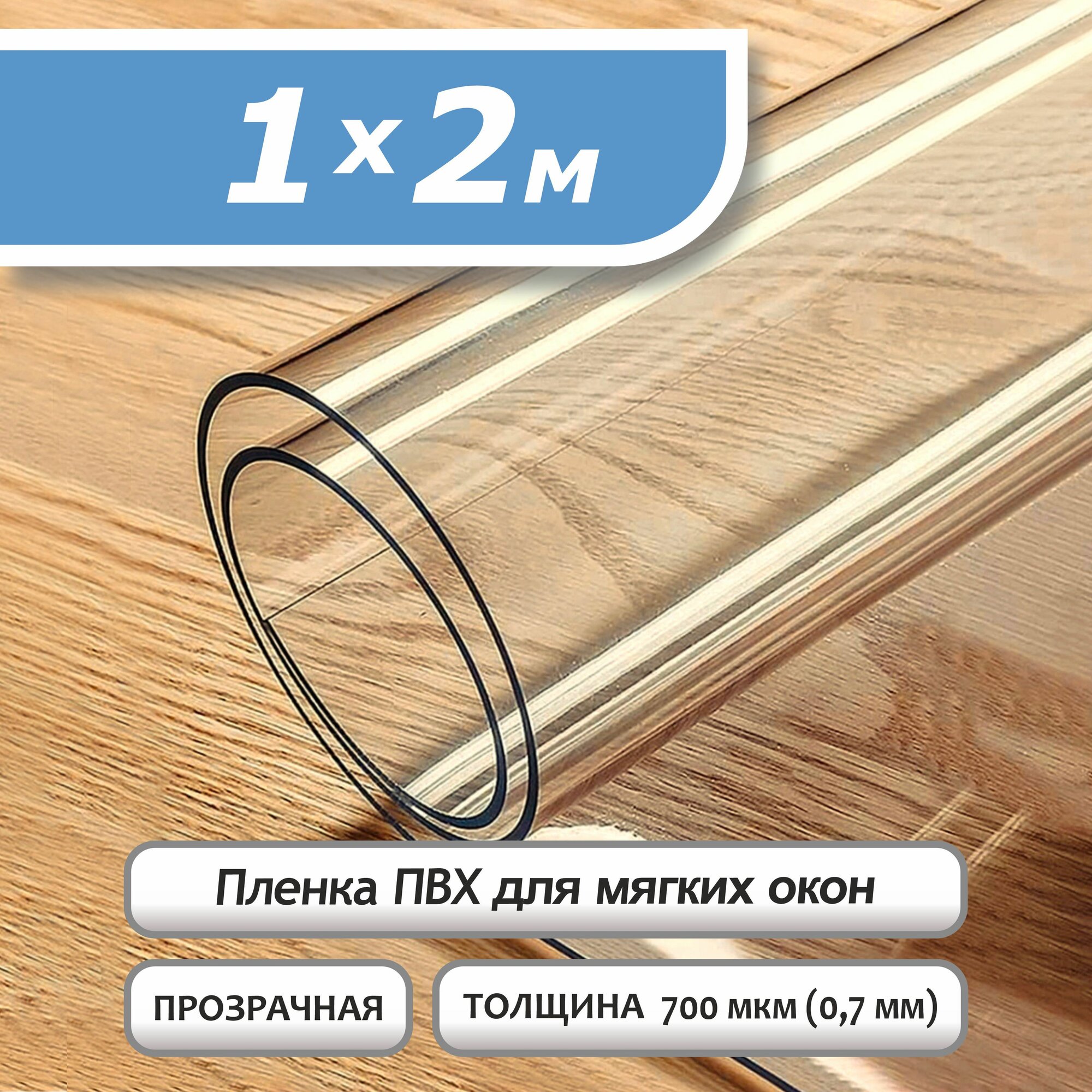Пленка ПВХ прозрачная 700 мкм. 2х1м. Мягкое окно, гибкое стекло