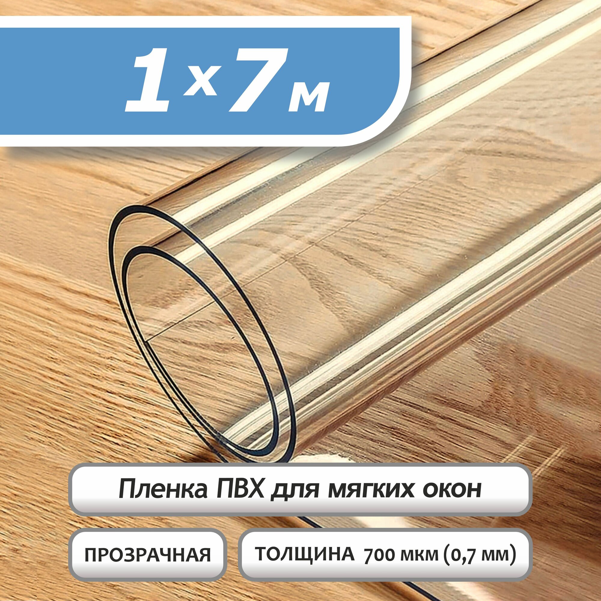 Купить Пленка ПВХ прозрачная 700 мкм. 1х7м. Мягкое окно, гибкое стекло