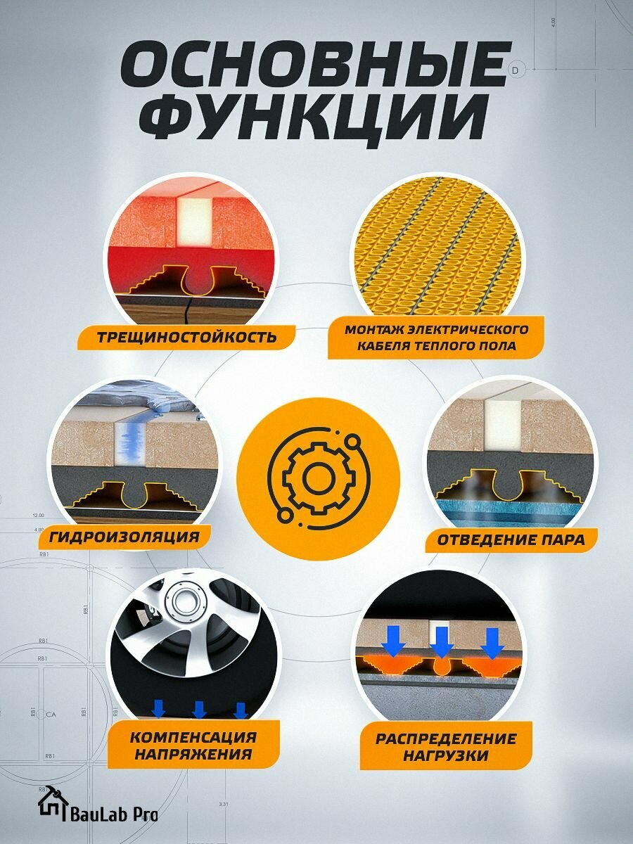 Распределяющее нагрузки гидроизоляционное полотно BauLab Pro Heat 2.0 (1 м/п) интересное: