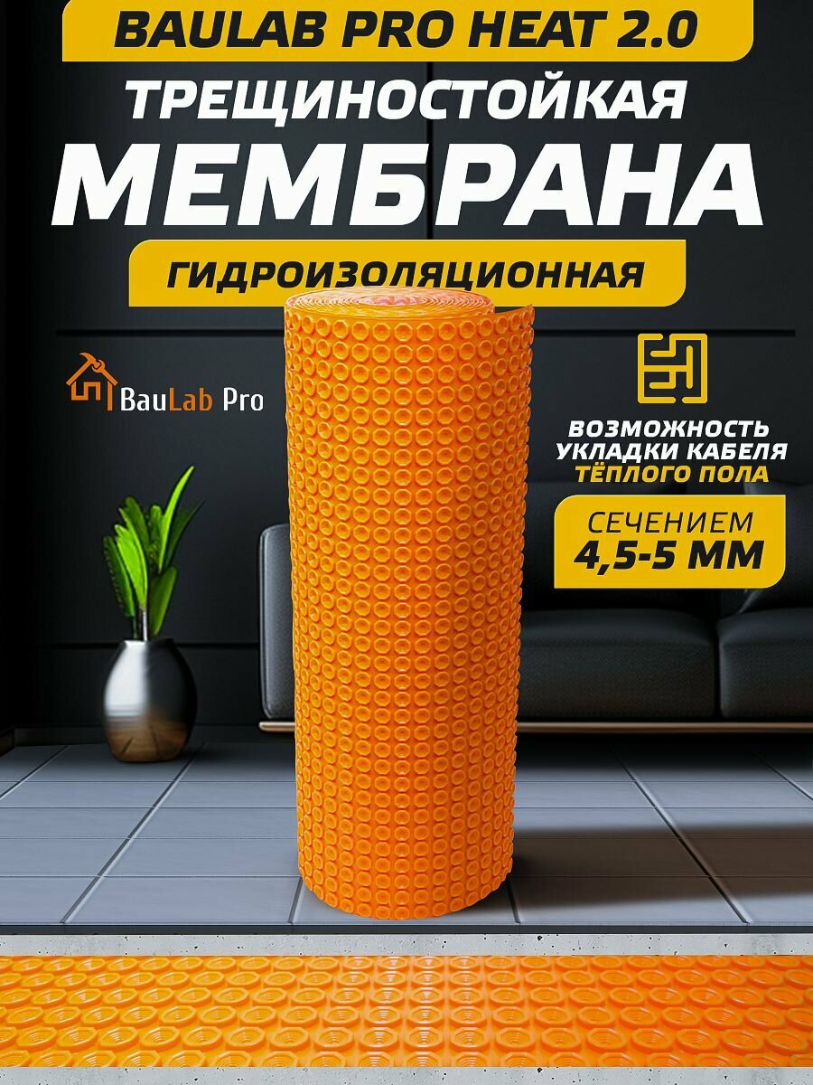 Распределяющее нагрузки гидроизоляционное полотно BauLab Pro Heat 2.0 (рулон 15м.) интересное: