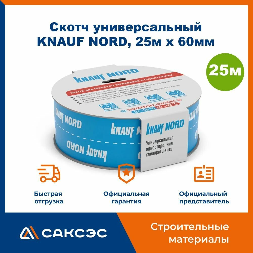 Скотч универсальный KNAUF NORD, 25м х 60мм / Односторонняя армированная соединительная лента Кнауф Норд интересное: