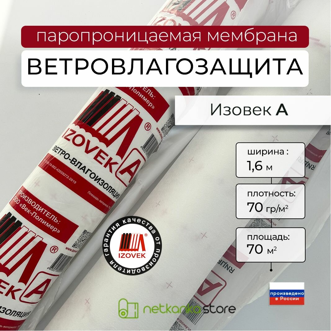 Ветро-влагозащитная мембрана IZOVEK А70 паропроницаемая (70г/м 70м2) для защиты кровли, стен, элементов несущих конструкций интересное: