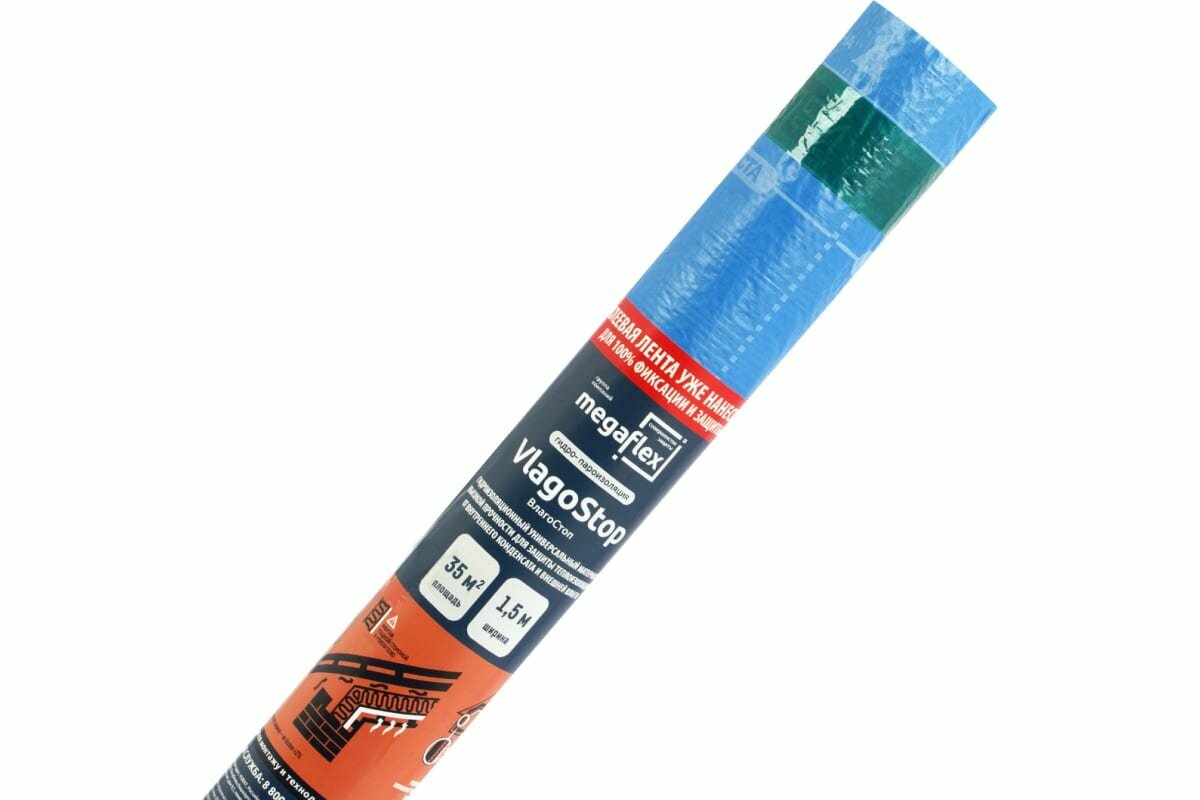Гидро-пароизоляция VlagoStop D двухслойная пленка с одной клеевой лентой (ш 1.5, 35м2) Megaflex интересное: