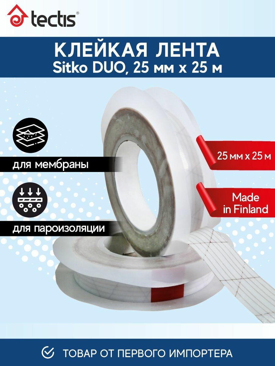 Купить Клейкая лента Tectis Sitko DUO 25mmx25m двусторонняя для кровельных работ, подходит для мембран и пароизоляции, армированная