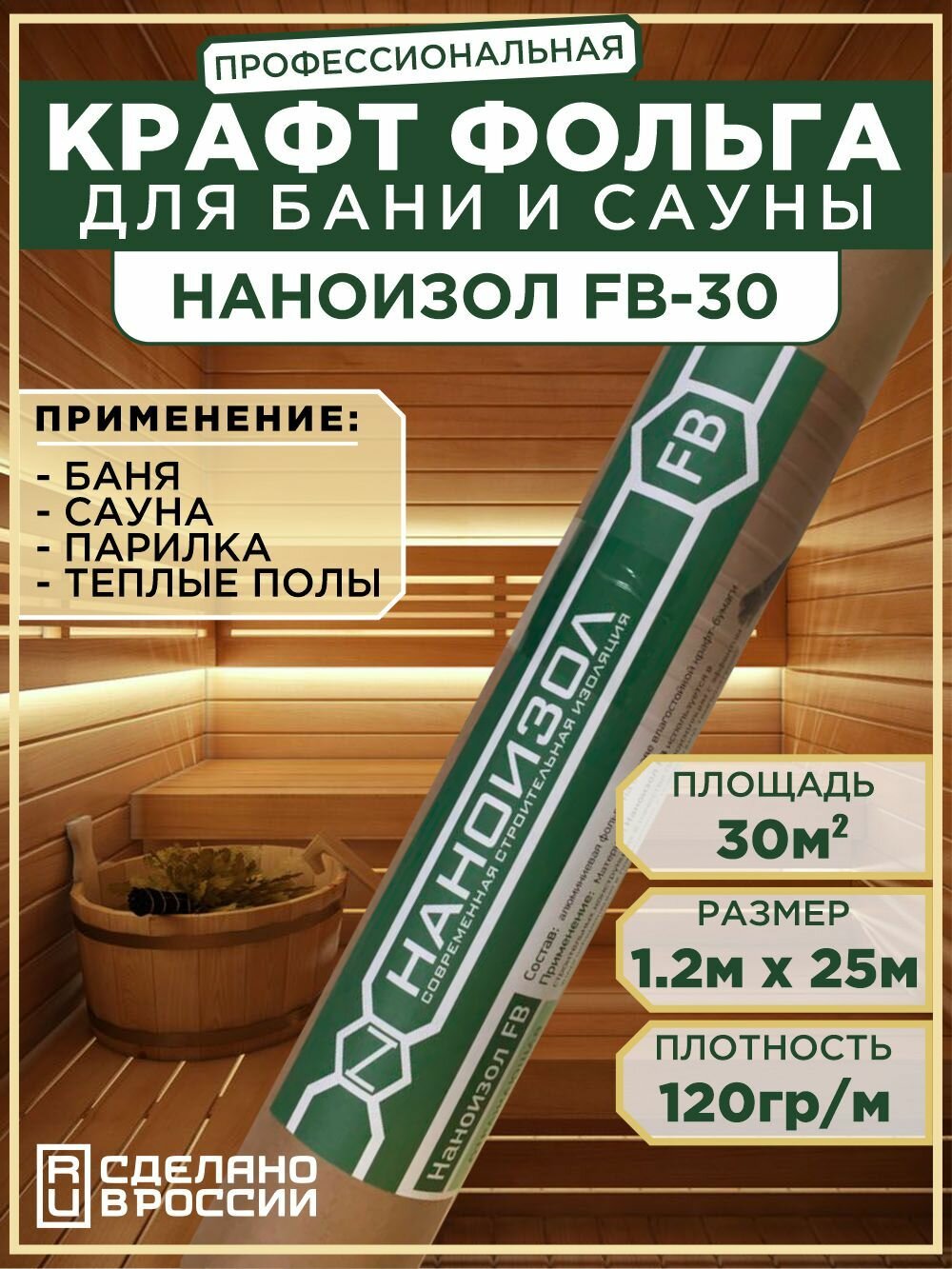 Фольга для бани и сауны на крафт бумаге Наноизол FB-30 м2 отражающая пароизоляция интересное:
