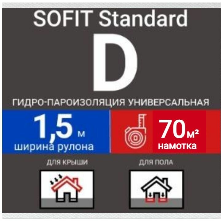 Пленка кровельная SOFIT Стандарт D гидро-пароизоляция универсальная ширина 1,5м/70кв. м интересное: