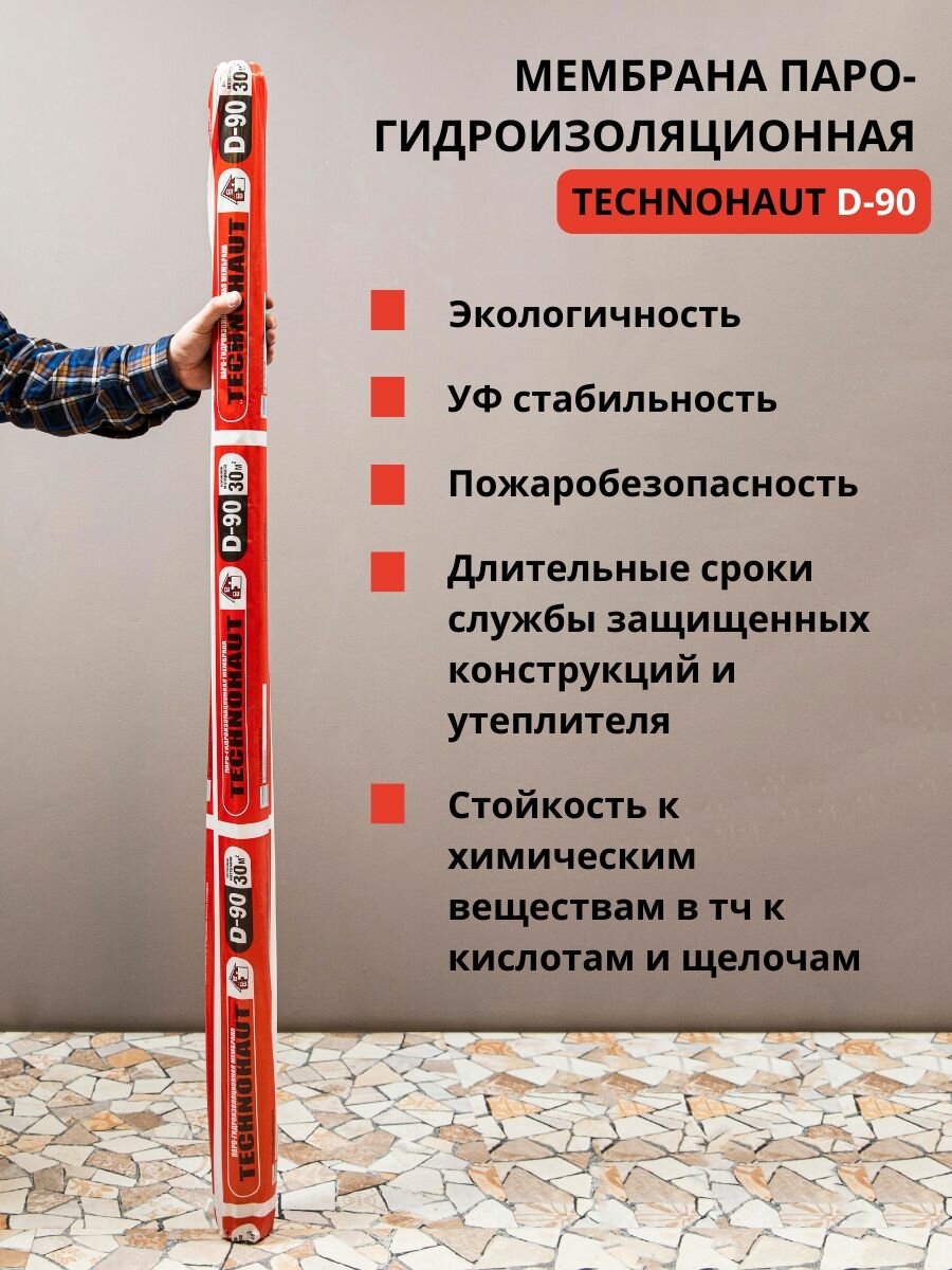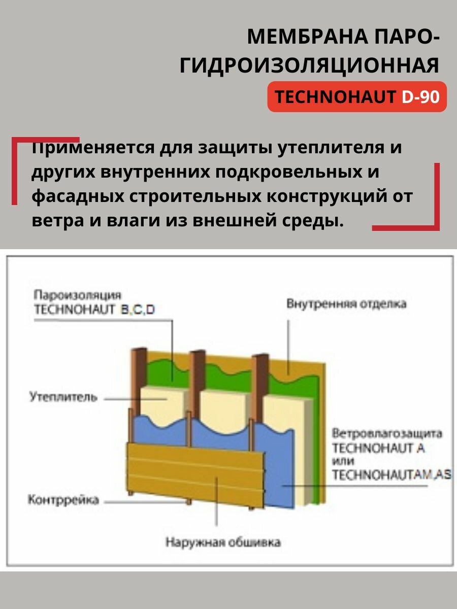 Мембрана паро-гидроизоляционная TechnoHaut D-90, паропроницаемость 30 г/м2, площадь 30 м², ширина 1,5 м интересное: