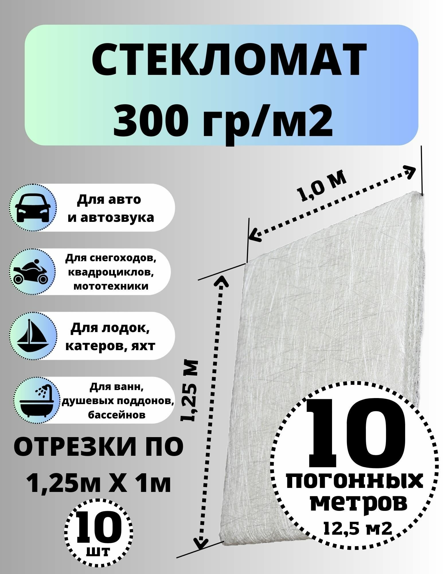 Стекломат плотность 300 г/м2, 1,25 х 1 м, конструкционный эмульсионный для ремонта лодок, ванн, авто