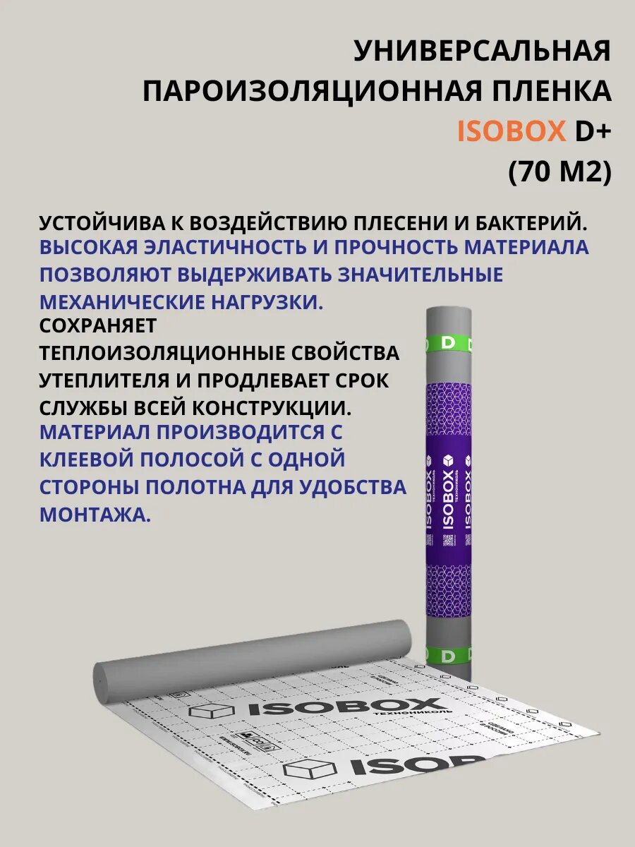 Пароизоляция Технониколь "ISOBOX D+" 70 м2, универсальна, для крыши, серая интересное: