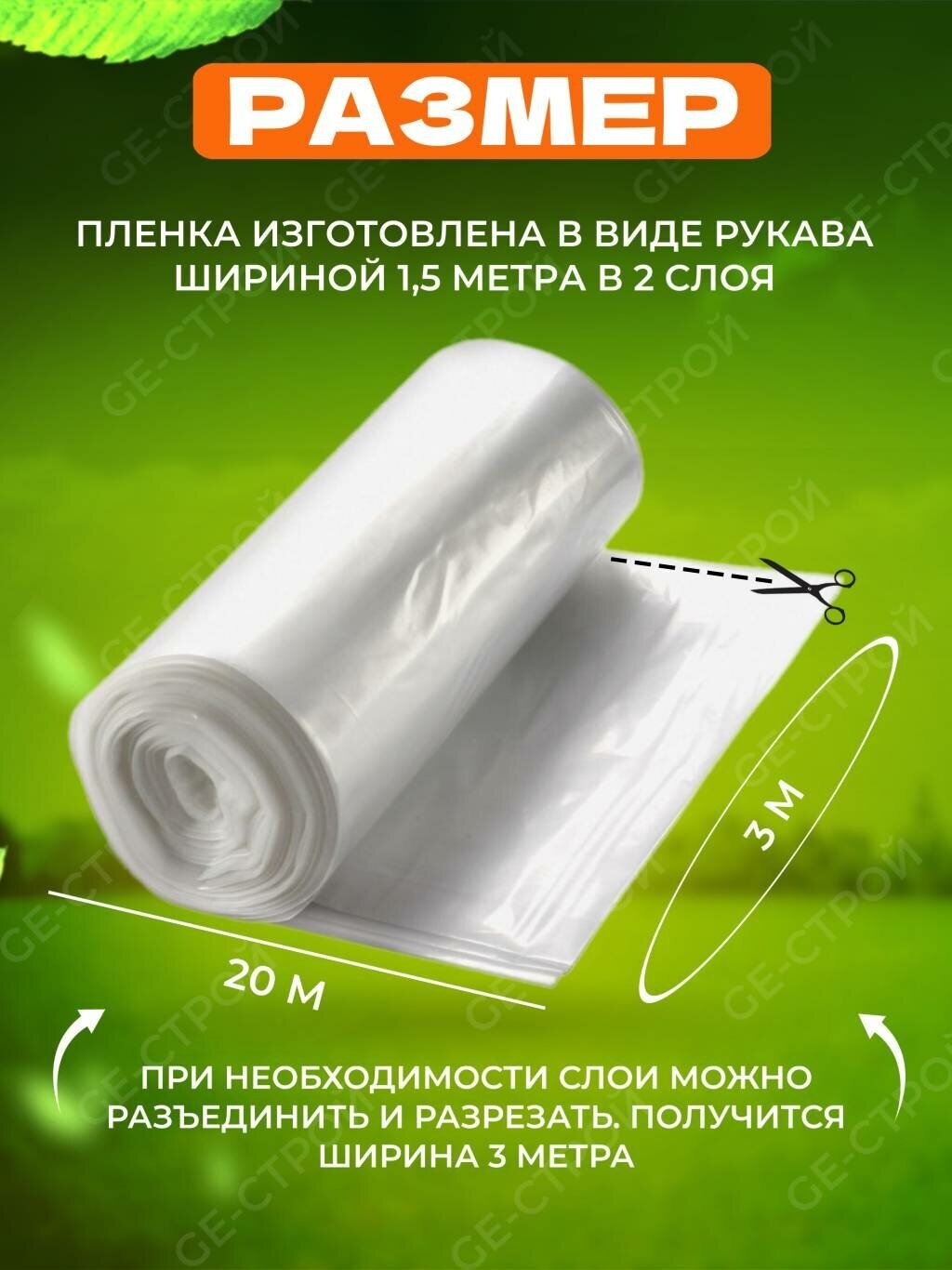 Пленка полиэтиленовая ГОСТ 200 мкм 3*10 метров (рукав 3м сложен в 2 раза) садовница укрывная для теплиц и парников / строительная / защитная