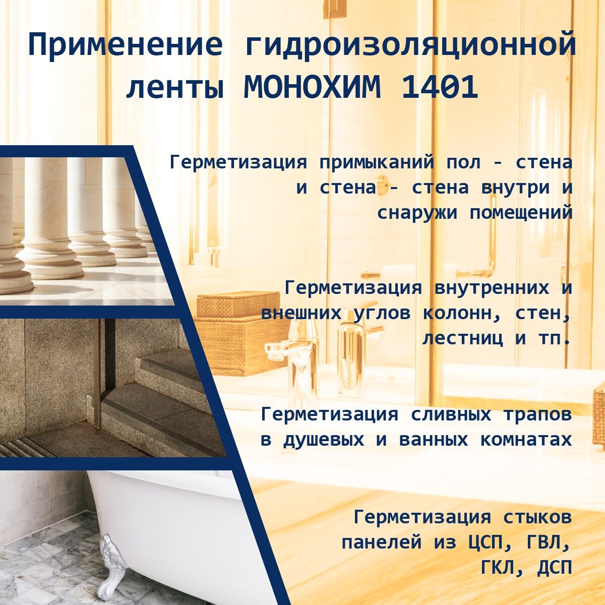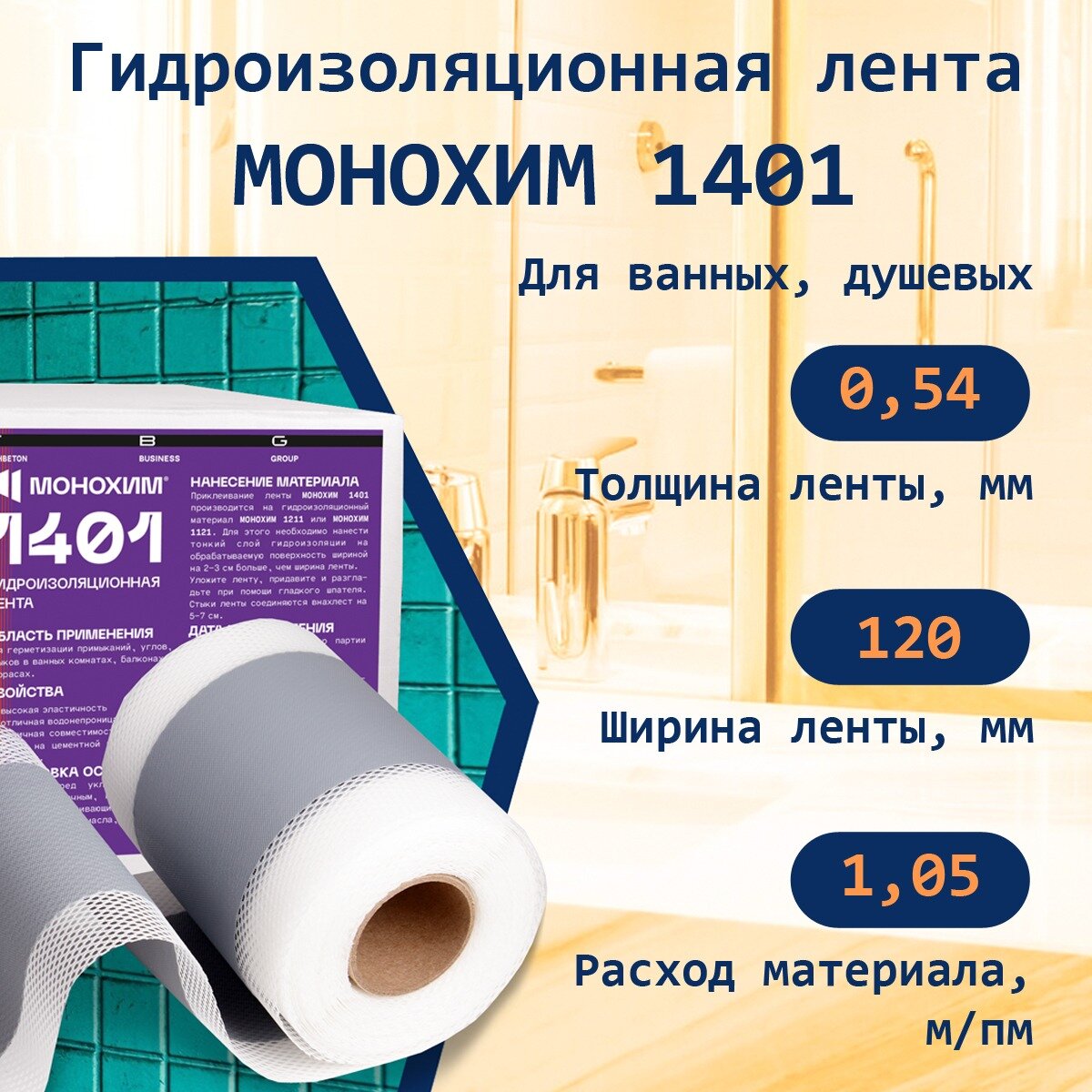 Гидроизоляционная лента МОНОХИМ 1401 для ванных, душевых (упаковка 10 м), 1 шт интересное: