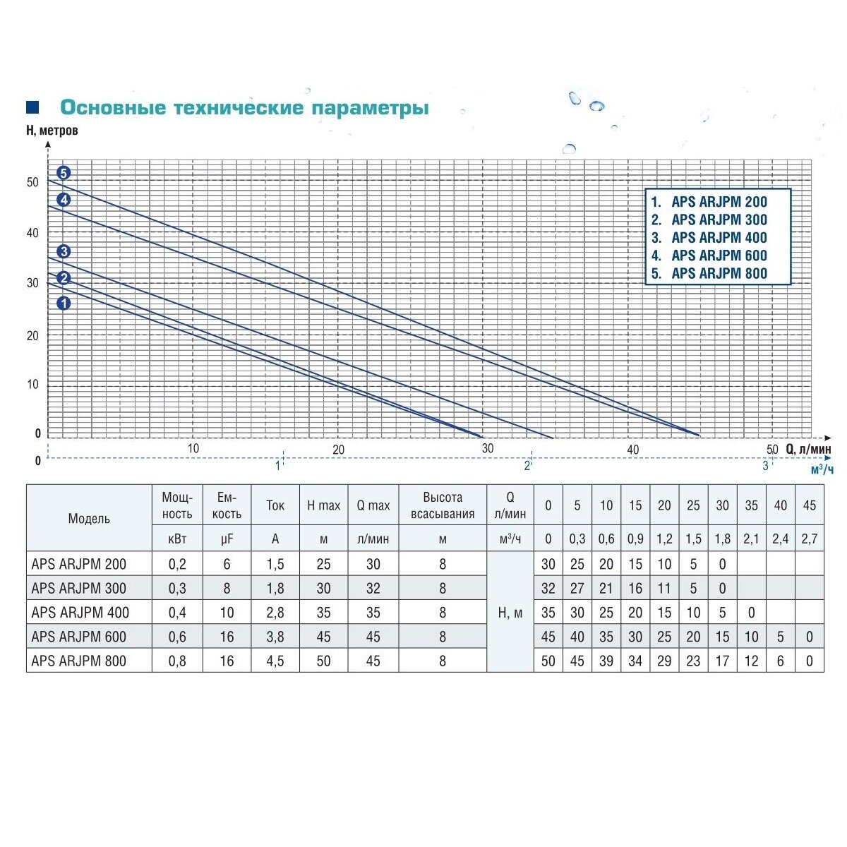 | Максимальный напор | 45 м |