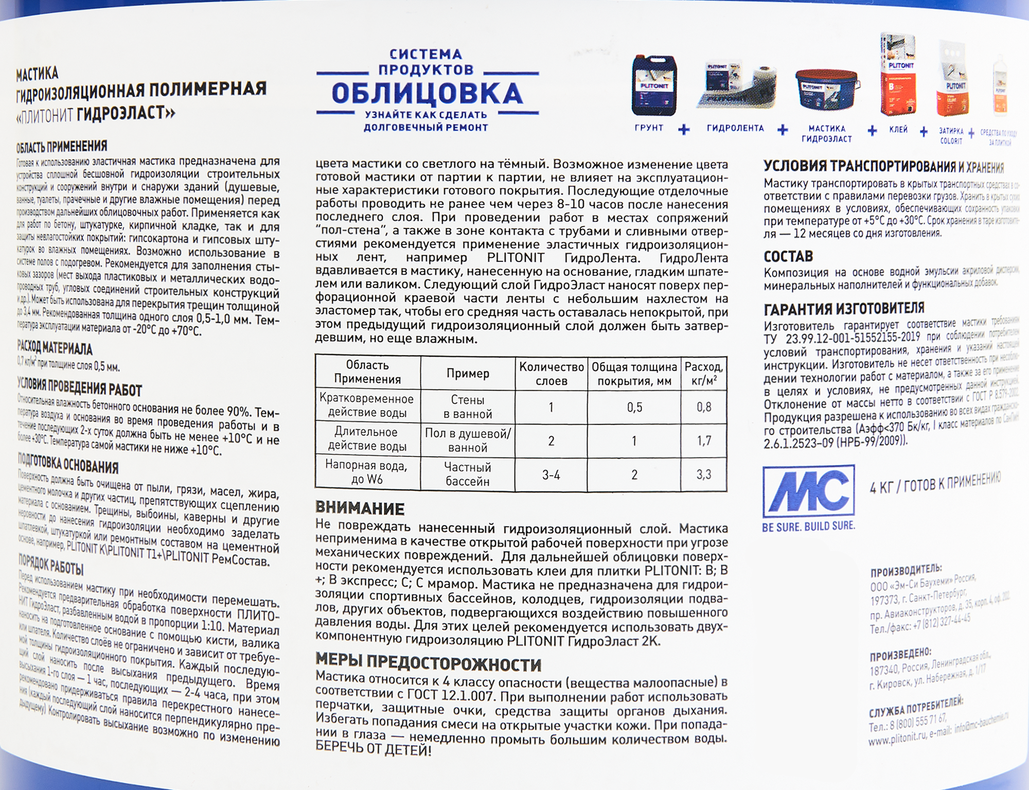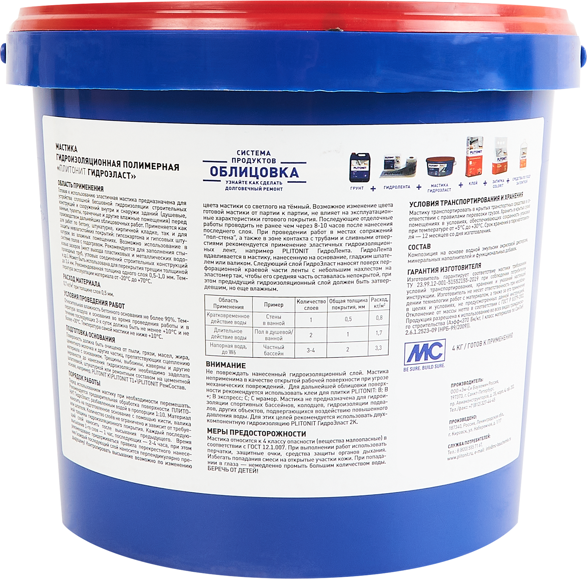 PLITONIT ГидроЭласт -4 кг эластичная гидроизоляционная мастика интересное: