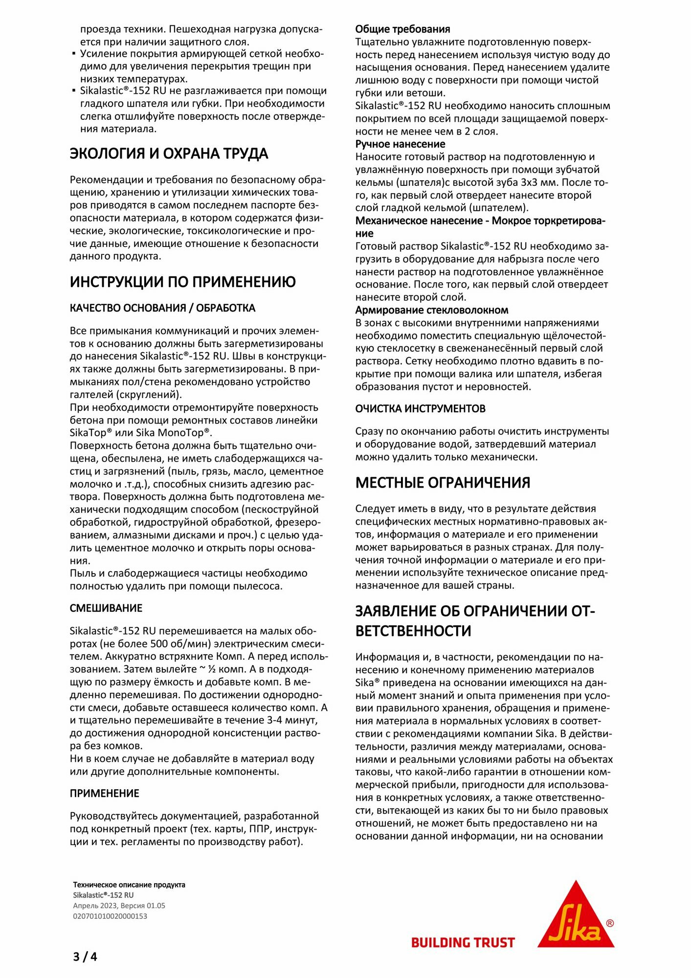 Sikalastic - 152 RU - эластичная гидроизоляция и защита бетона на цементно-полимерной основе с армирующим волокном интересное: