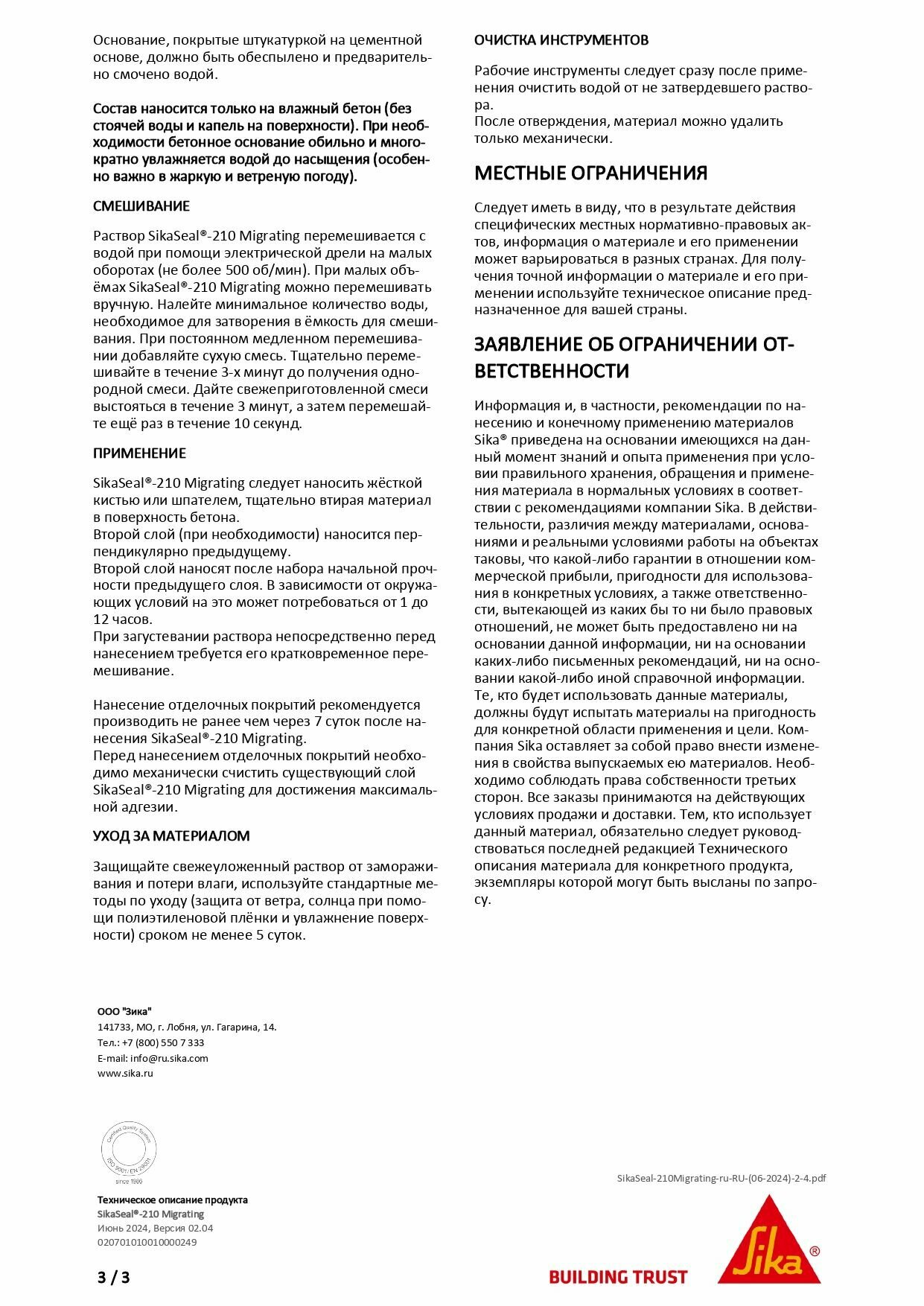 Гидроизоляция проникающая SikaSeal-210 Migrating, Ведро 15кг интересное: