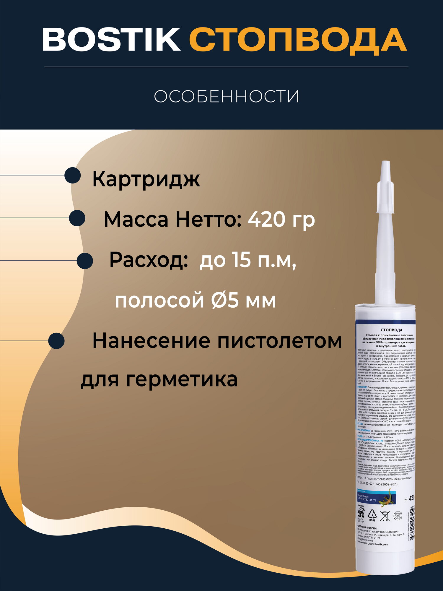 Гидроизоляционная полимерная мастика для бассейна и ванных комнат Bostik SMP СтопВода, 420гр, артикул 50010035. интересное: