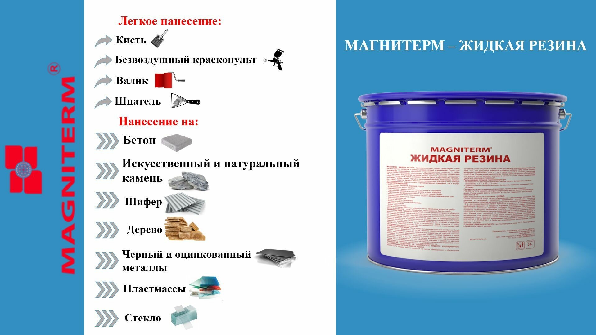 Жидкая резина "Магнитерм", для гидроизоляции, прозрачная, 10 л ( 8 кг). интересное:
