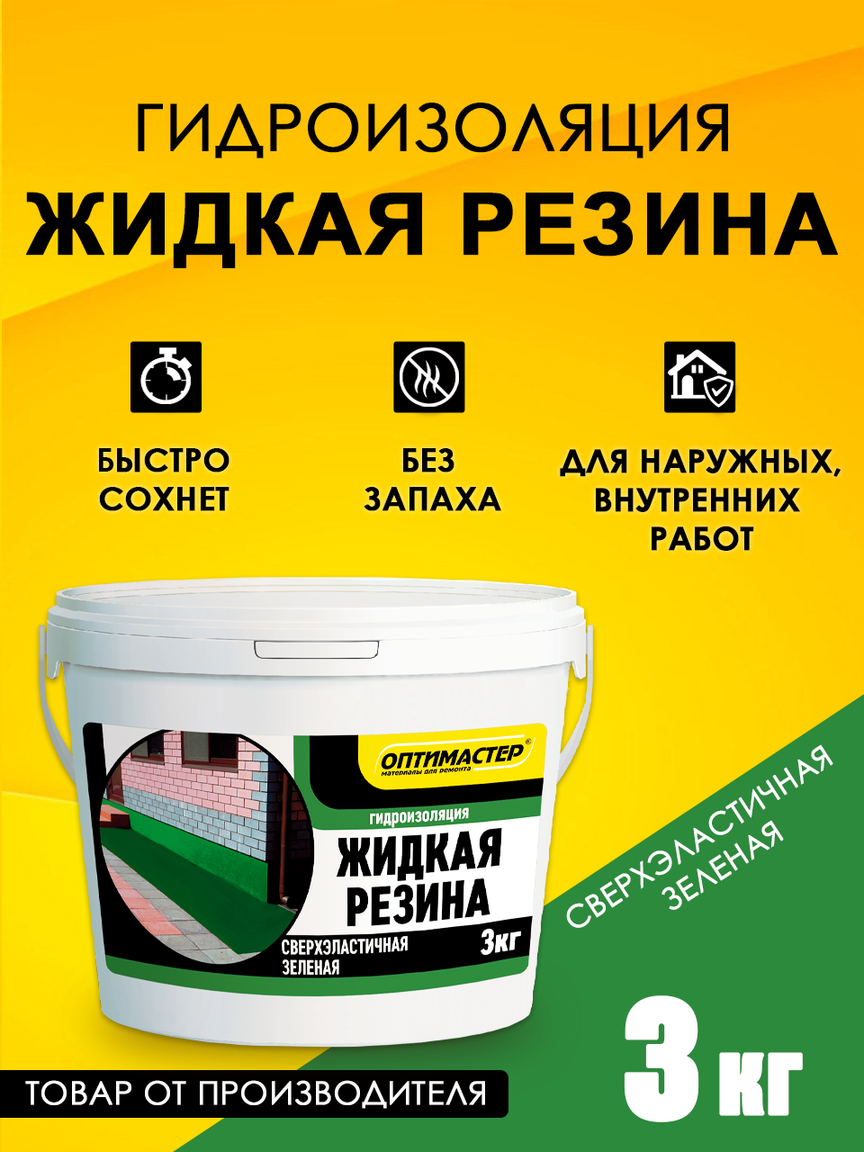 Купить Гидроизоляция "Жидкая Резина" 3 кг, зеленая, ТМ "Оптимастер"