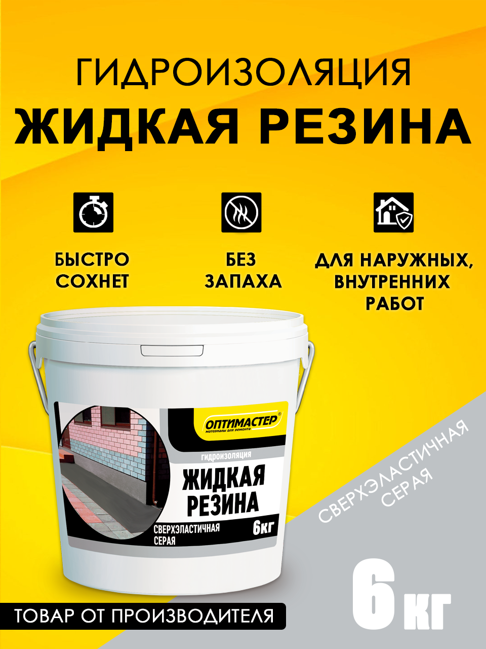 Ниже Вы можете прочитать отзывы на Гидроизоляция "Жидкая Резина" 6 кг, серая, ТМ "Оптимастер", ознакомится с подробными характеристиками, посмотреть интересные обзоры и фотографии на Гидроизоляция "Жидкая Резина" 6 кг, серая, ТМ "Оптимастер".