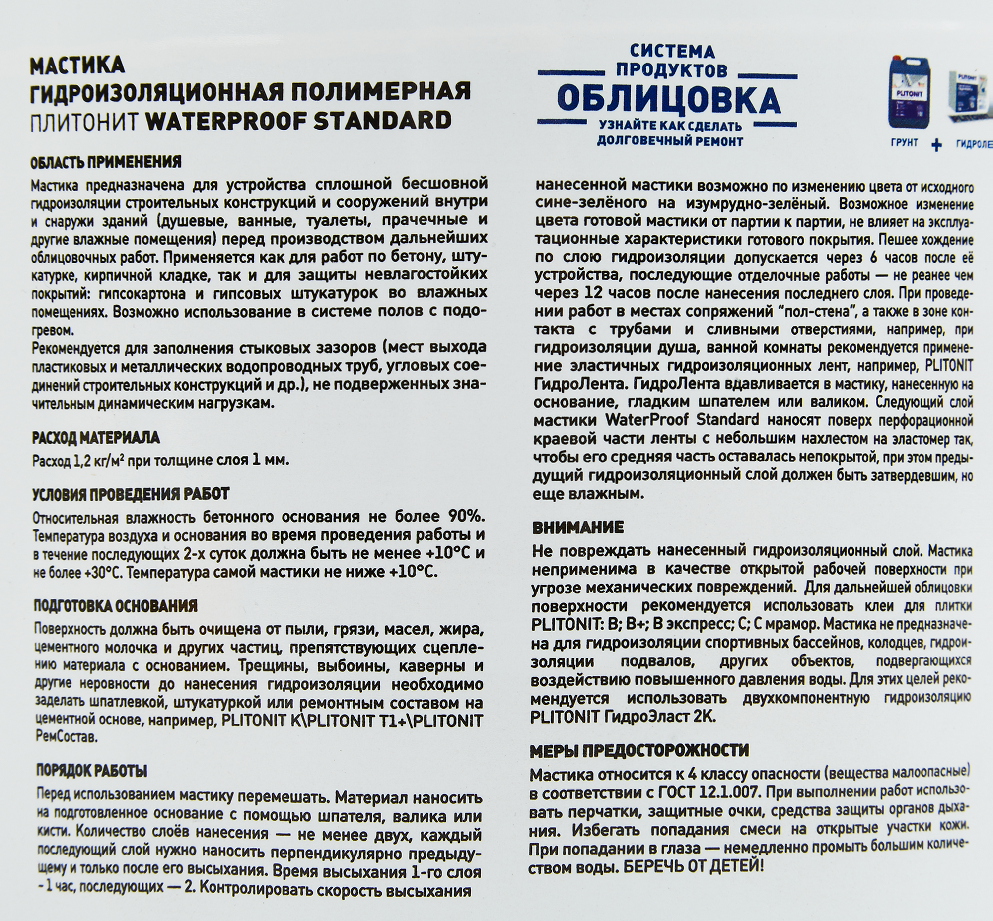 Ниже Вы можете прочитать отзывы на Эластичная гидроизоляционная мастика PLITONIT WaterProof Standard 4,5 кг, ознакомится с подробными характеристиками, посмотреть интересные обзоры и фотографии на Эластичная гидроизоляционная мастика PLITONIT WaterProof Standard 4,5 кг.