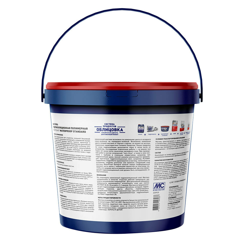 Эластичная гидроизоляционная мастика PLITONIT WaterProof Standard 4,5 кг интересное: