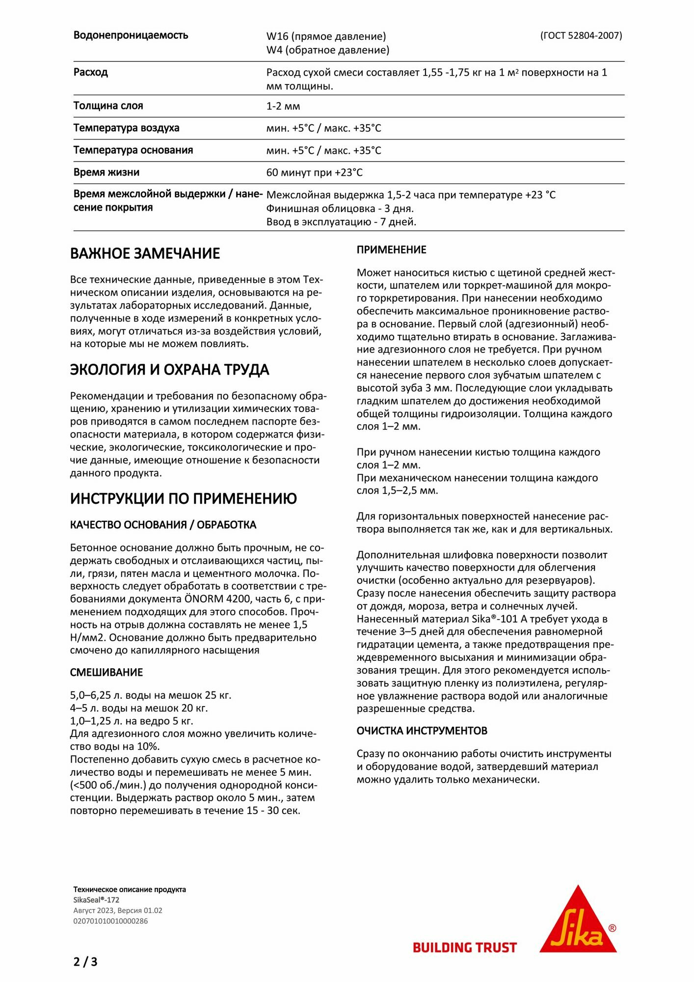 SikaSeal-172 - тонкослойная гидроизоляция на цементной основе интересное: