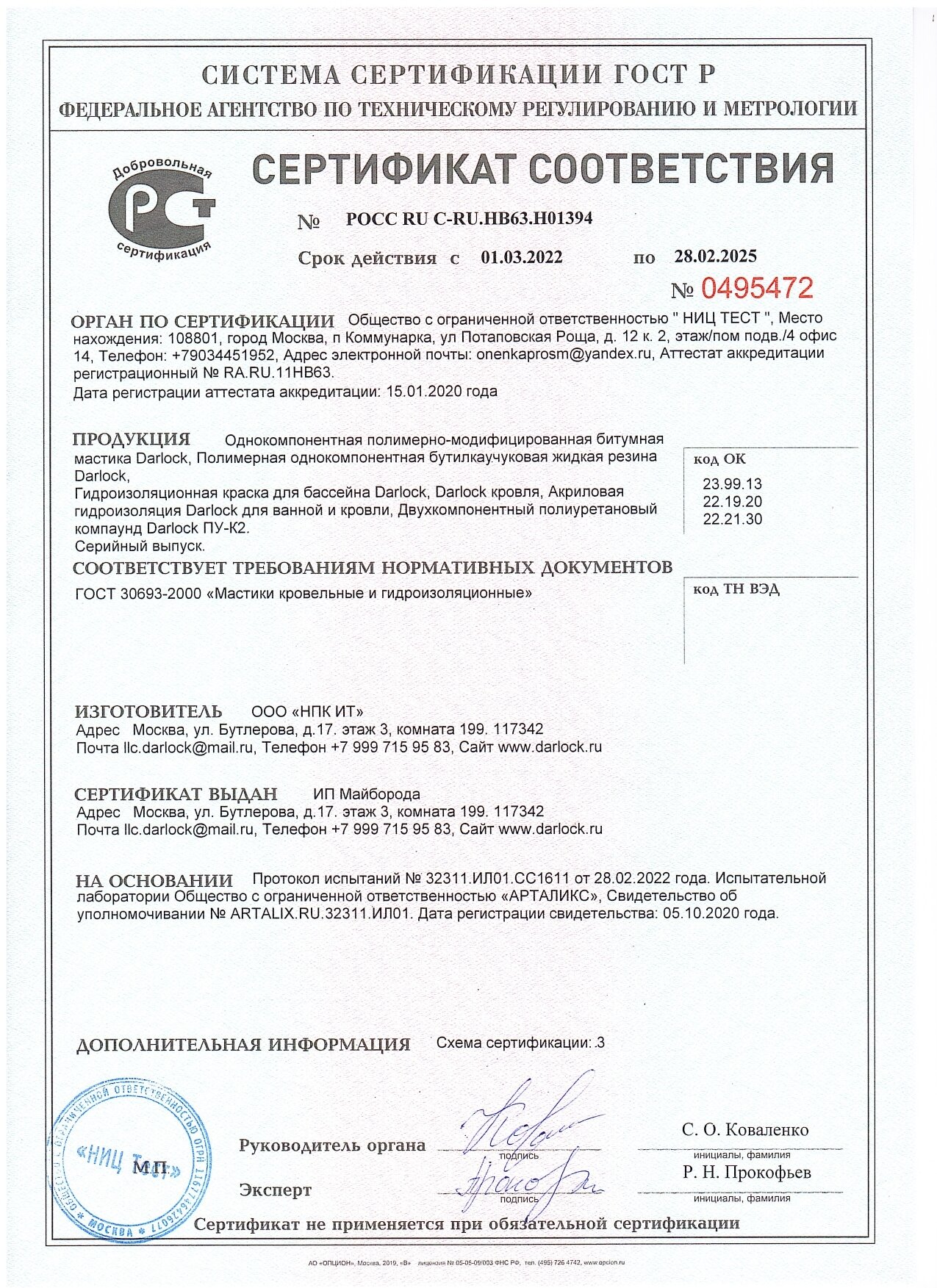 Купить Жидкая гидроизоляция Darlock Жидкая резина 1л+Армирующая лента и растворитель 200 мл в подарок