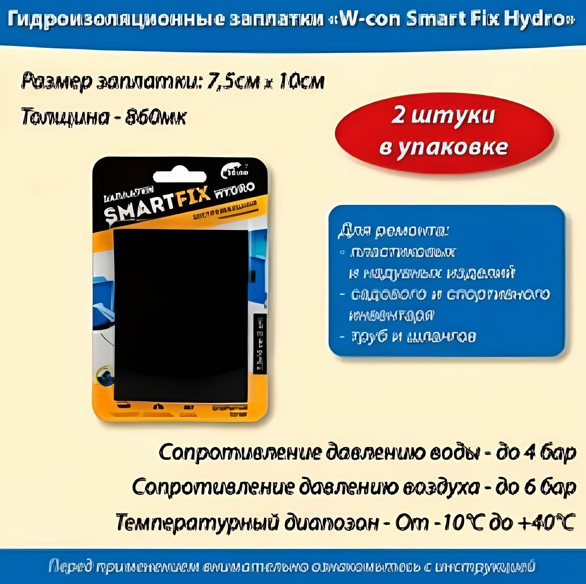 Заплатки гидроизоляционные W-con SmartFix HYDRO 7,5*10см 2шт интересное:
