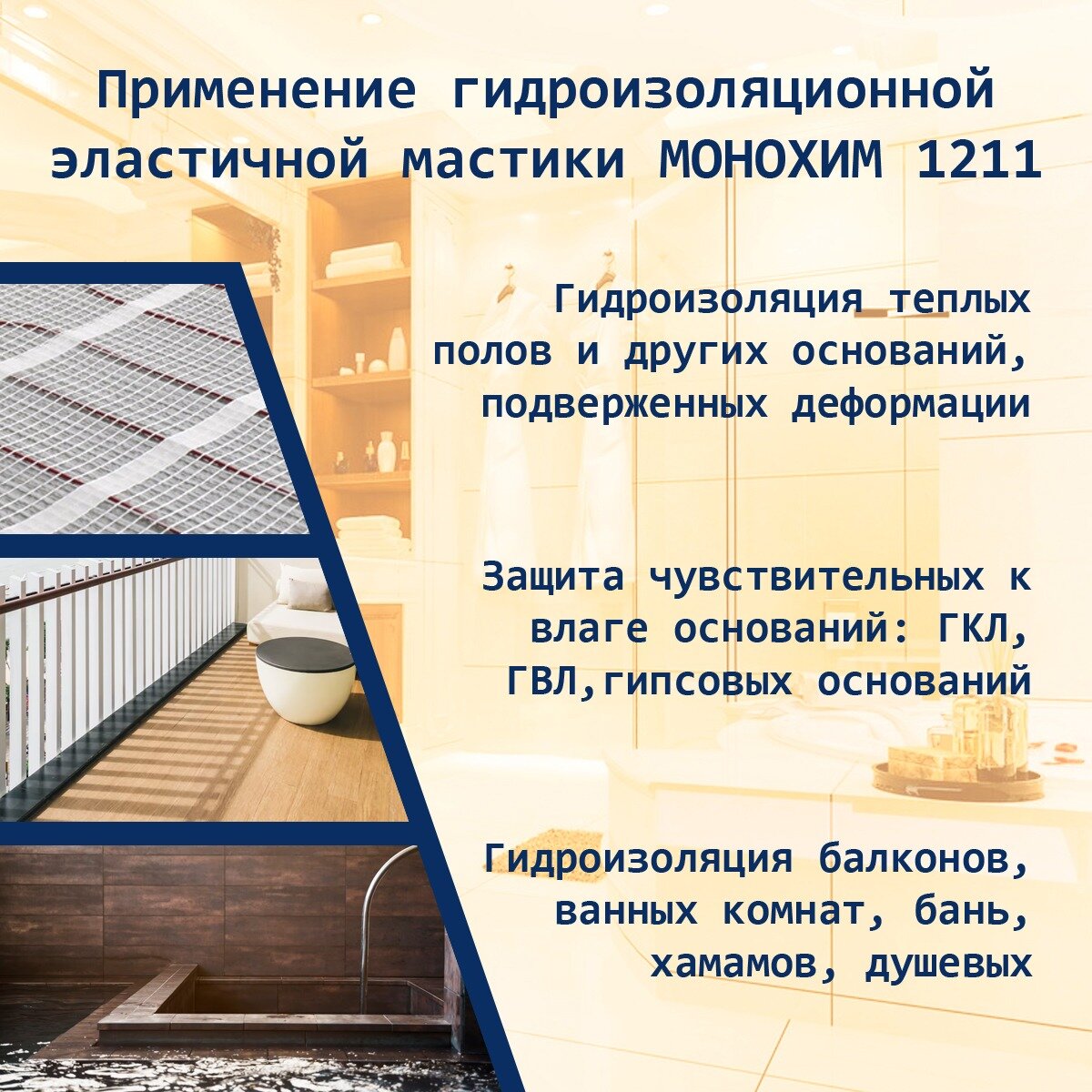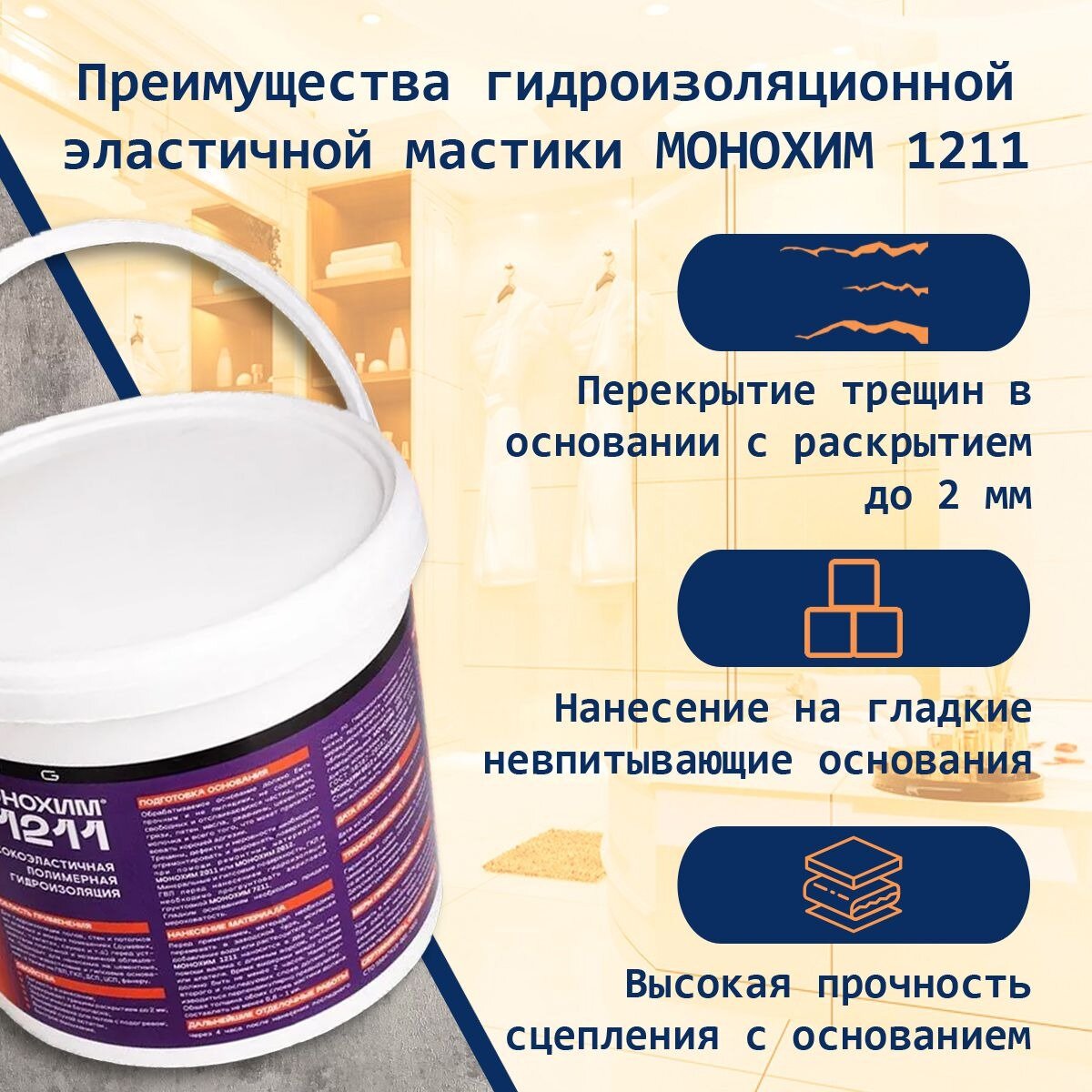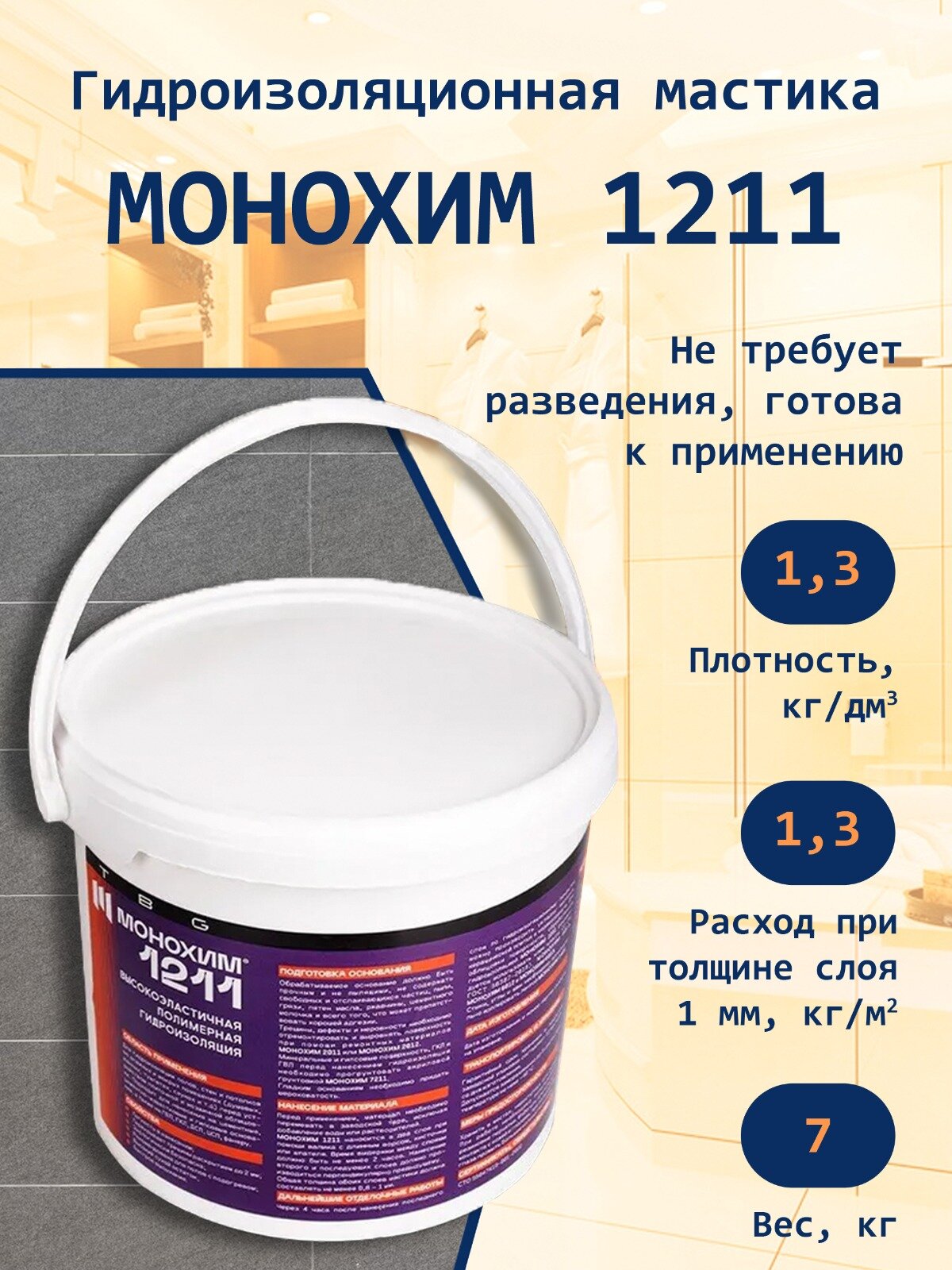 Мастика гидроизоляционная "МОНОХИМ" 1211, полимерная, для ванных комнат, акрил, 7кг интересное: