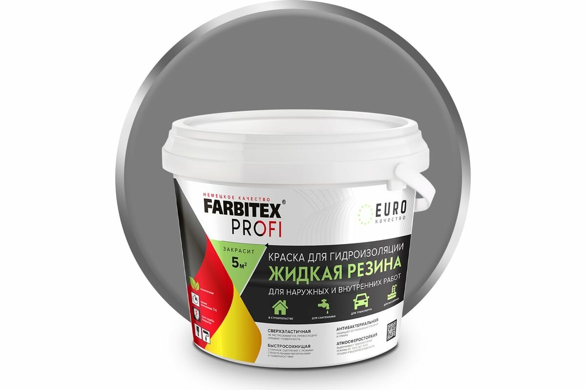 Краска для стен Жидкая резина FARBITEX PROFI 2,5 кг серая
