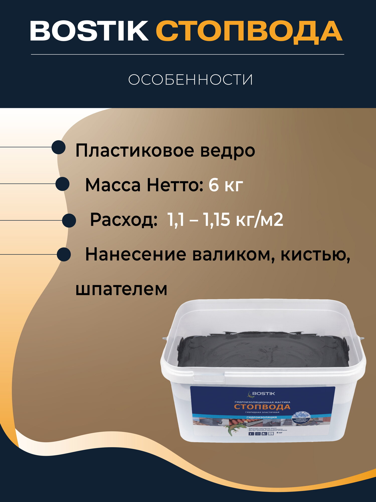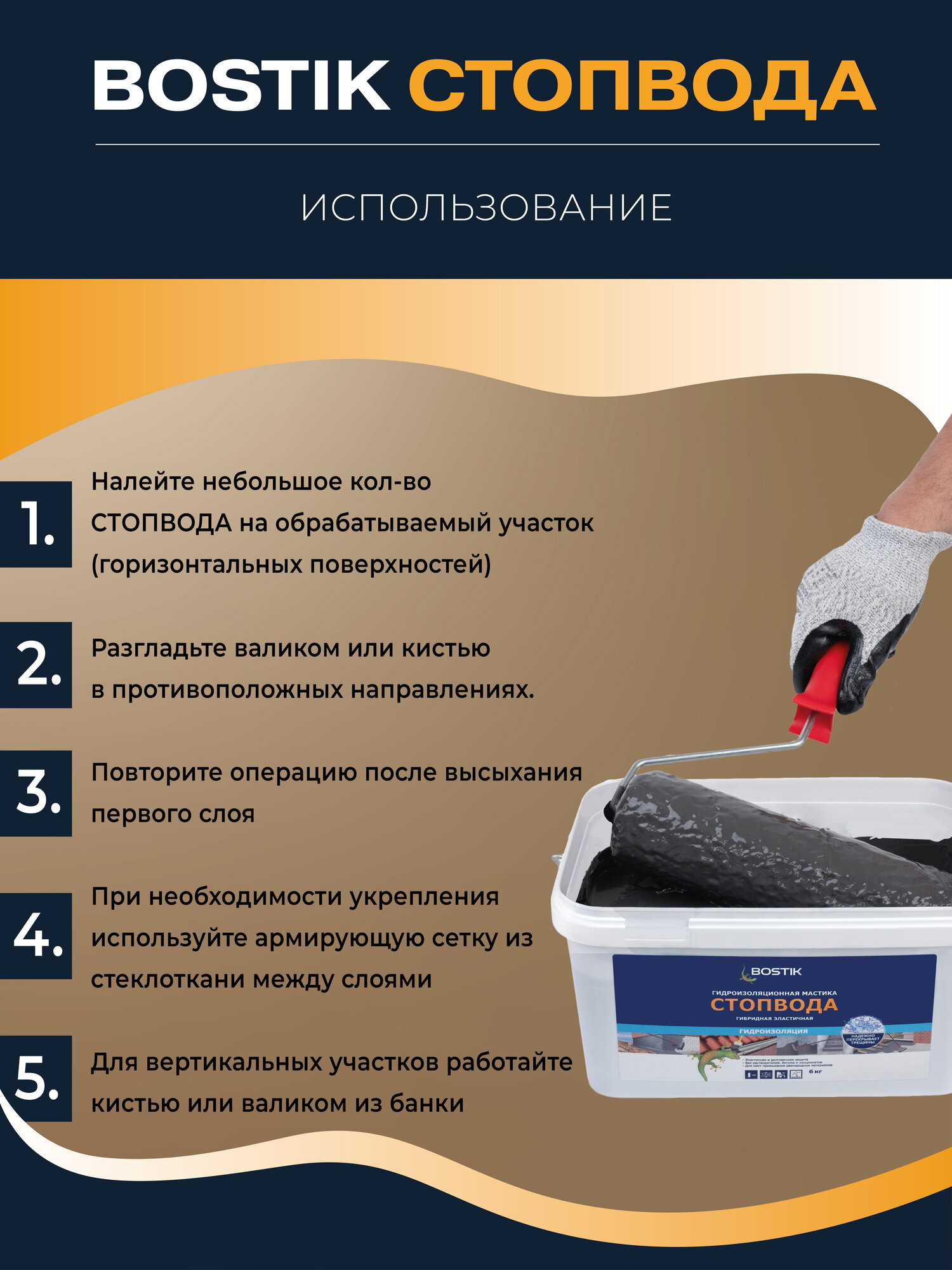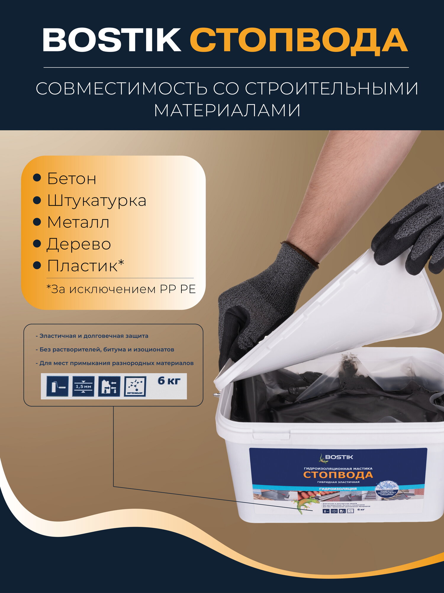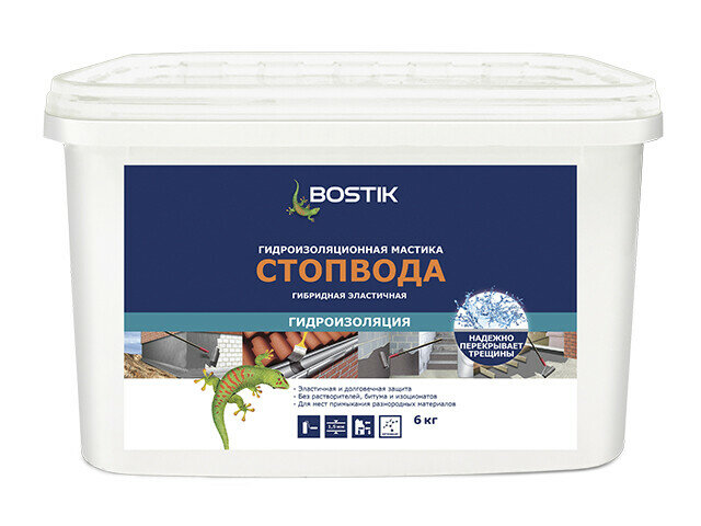 BOSTIKSMP СтопВода гидроизоляционная полимерная мастика для бассейна и ванных комнат, 6кг, артикул 50010033. интересное:
