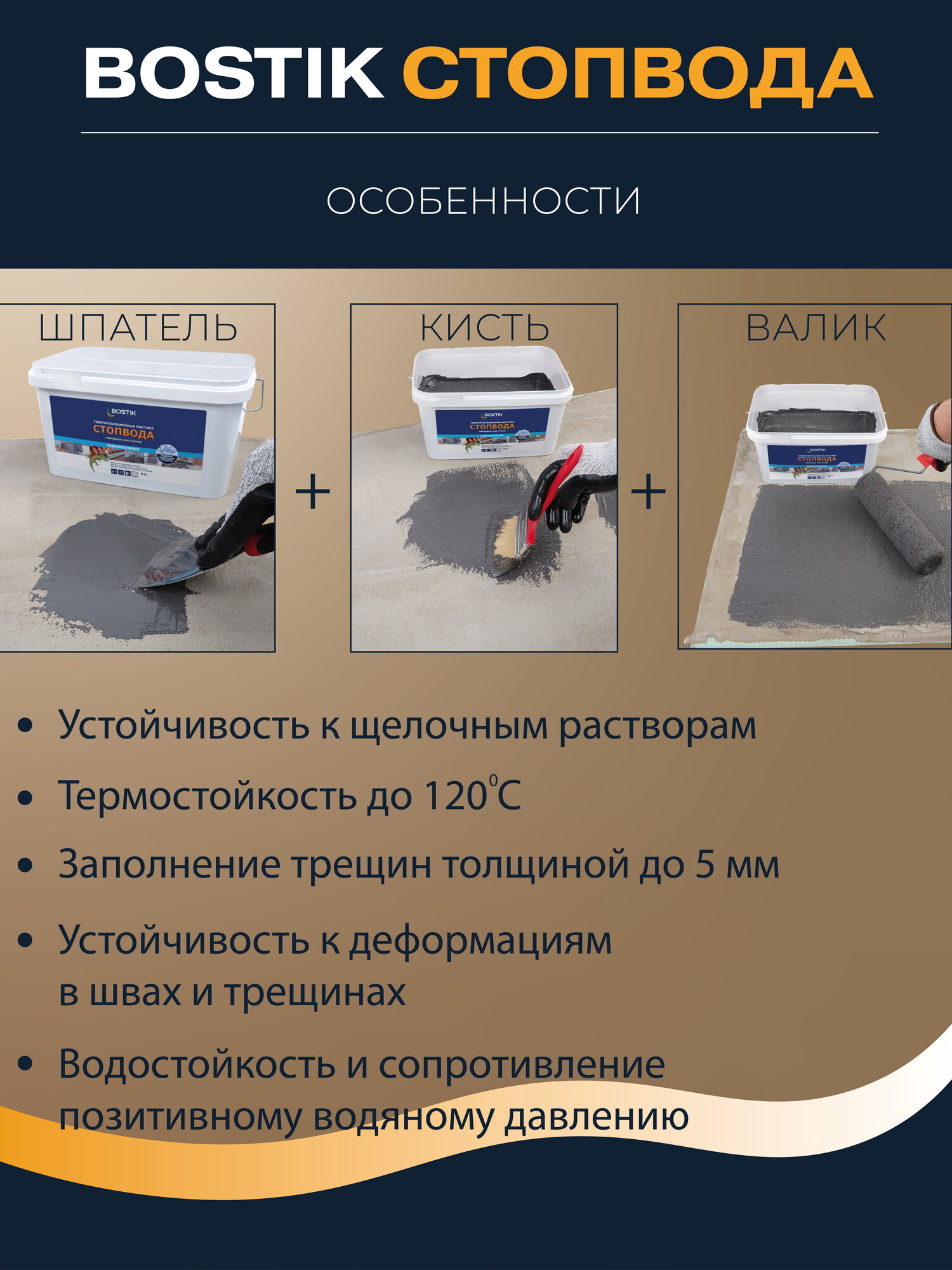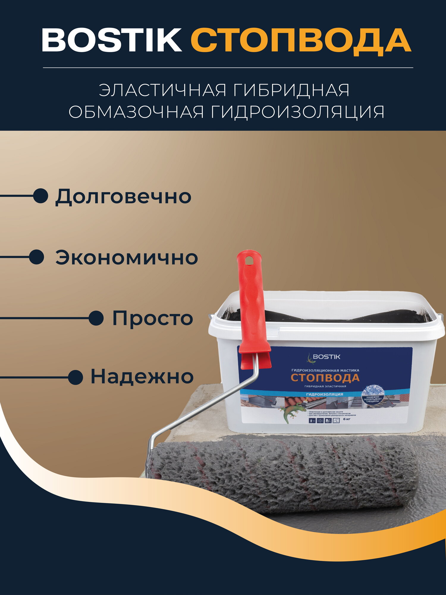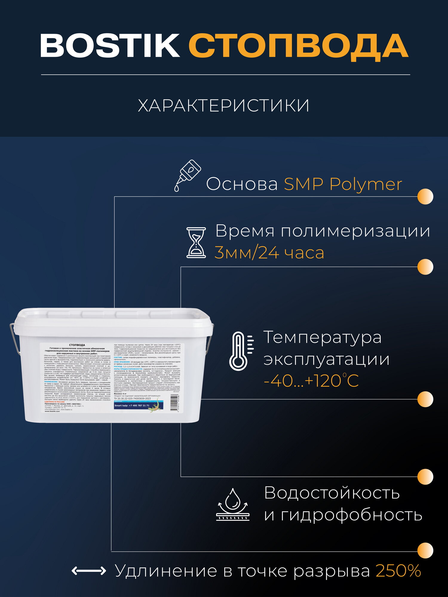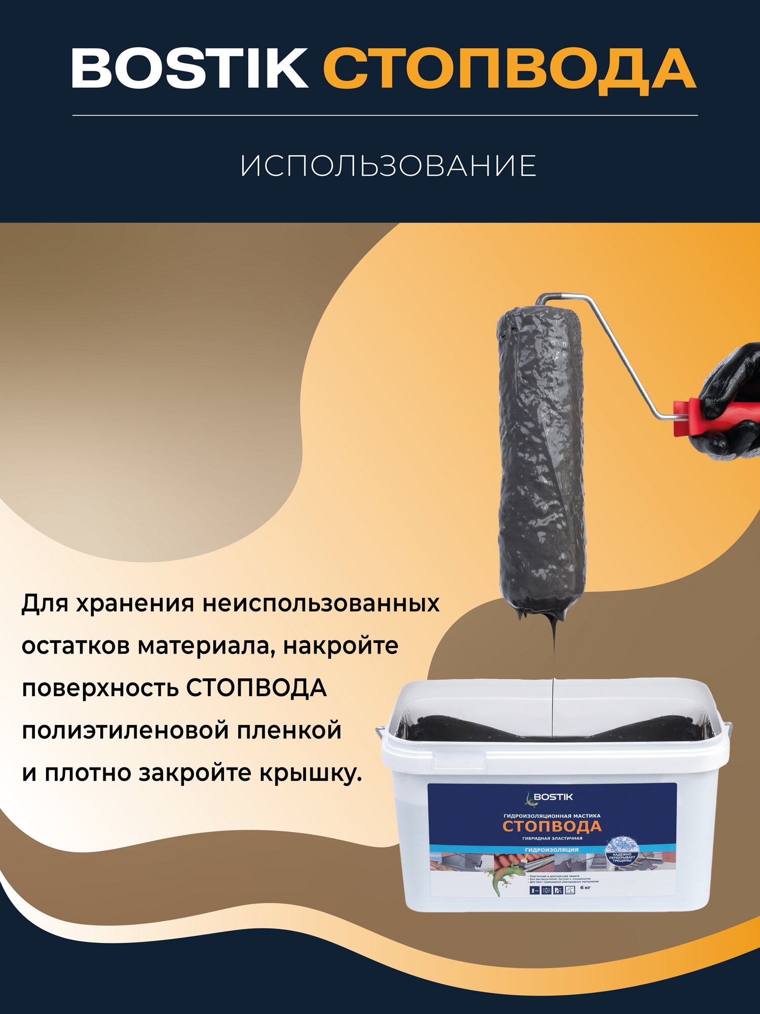 BOSTIKSMP СтопВода гидроизоляционная полимерная мастика для бассейна и ванных комнат, 6кг, артикул 50010033. интересное:
