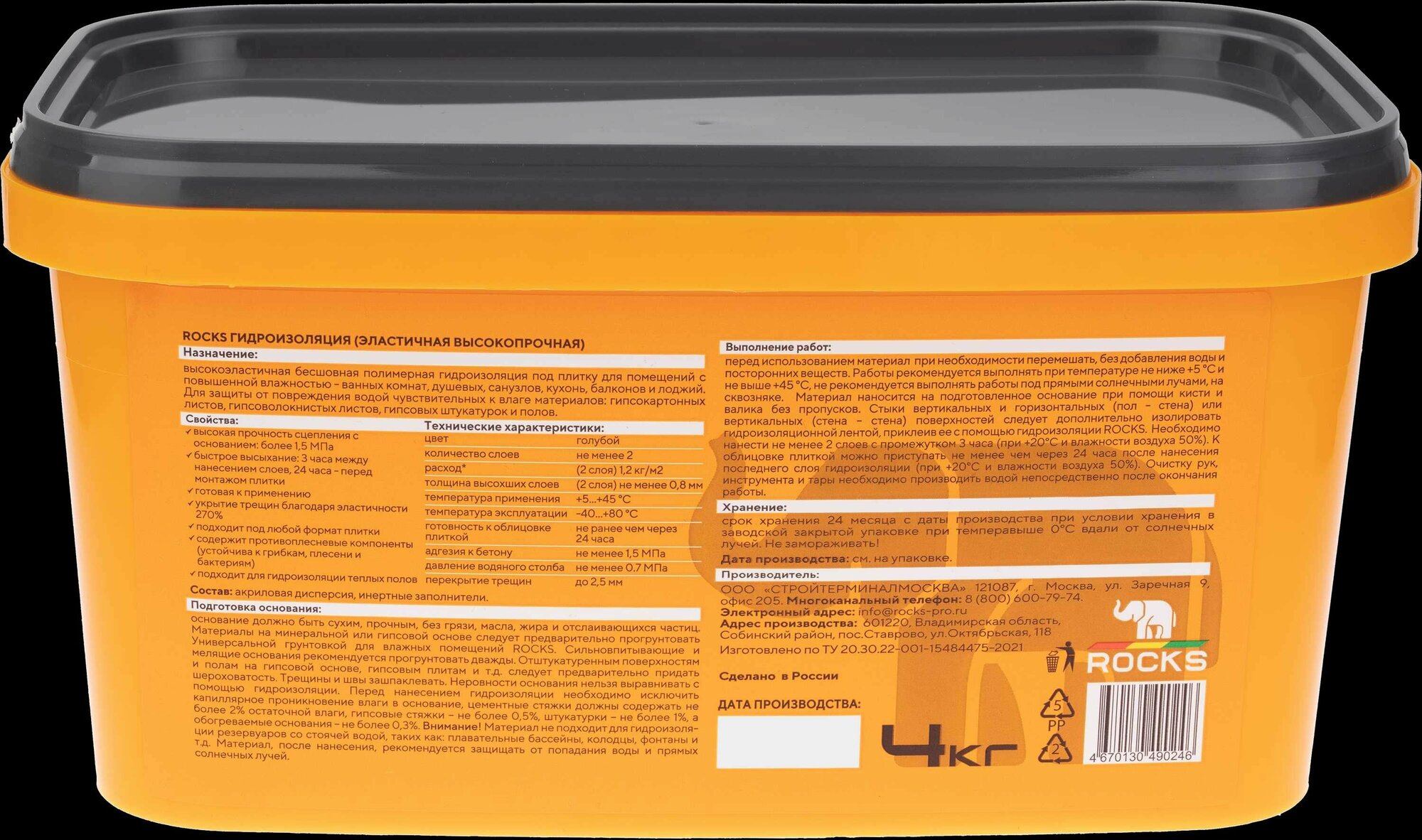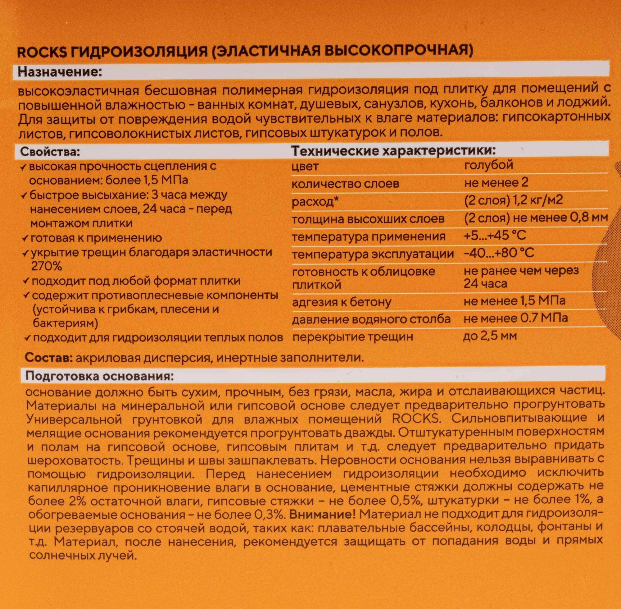 Гидроизоляция акриловая однокомпонентная Rocks 4 кг интересное: