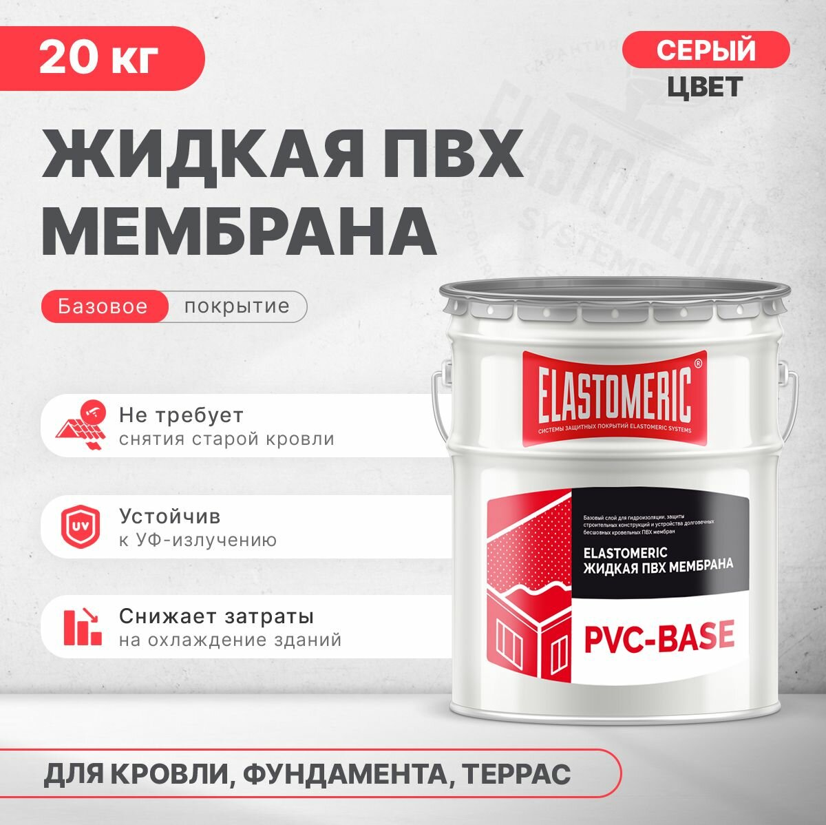 Купить ПВХ мембрана жидкая Elastomeric PVC-Base, 20кг.