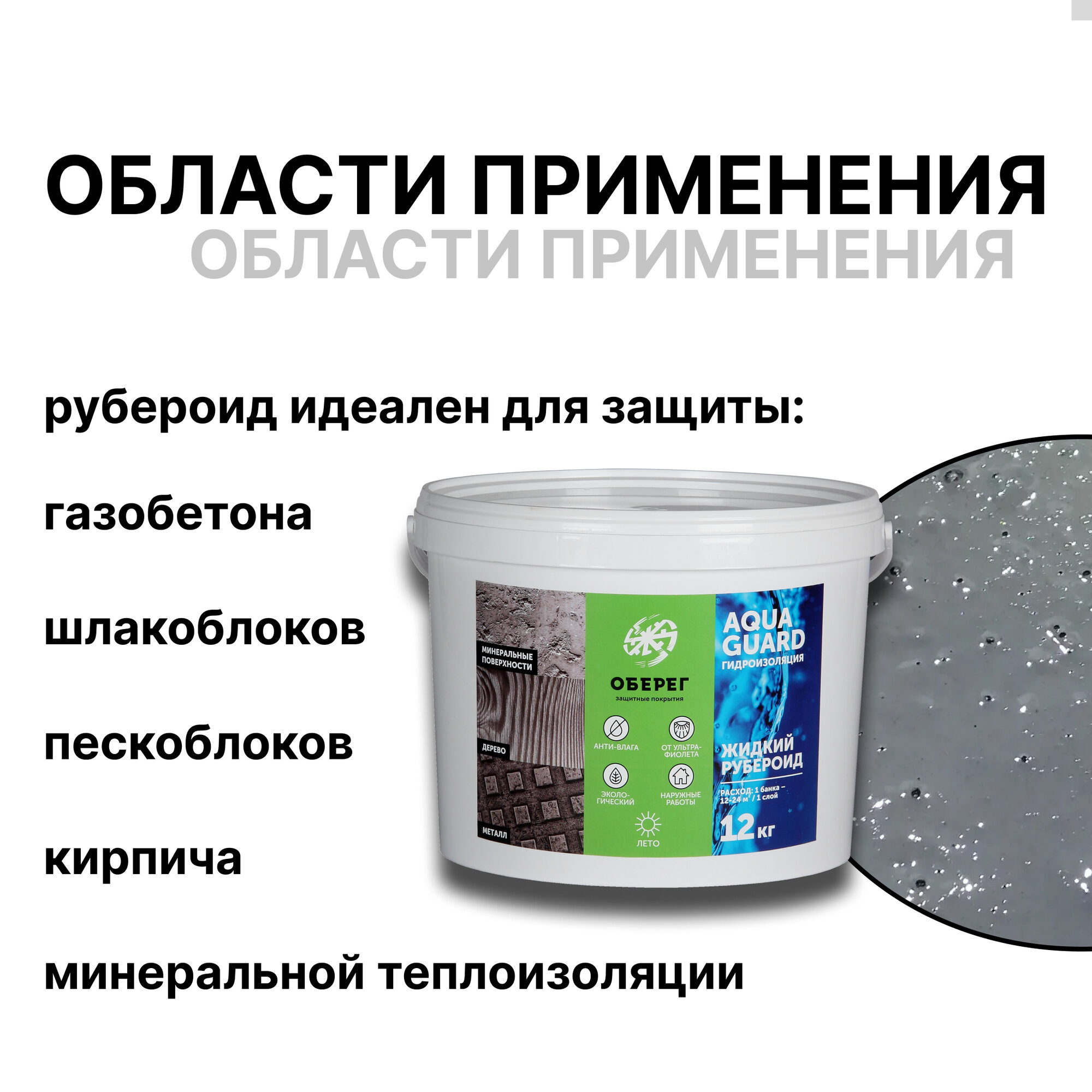 Жидкий рубероид акриловый Оберег AquaGuard (цвет серый) - 10л/12кг интересное: